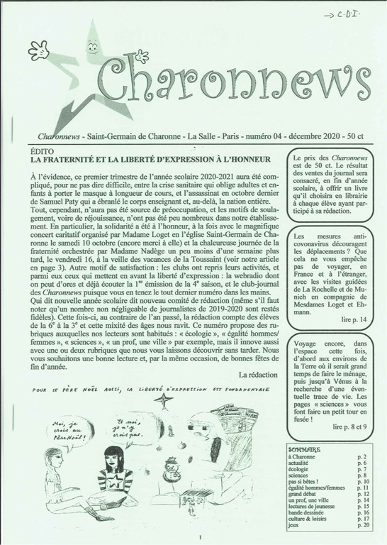 Un numéro de 20 pages dans lequel on retrouve les rubriques écologie, sciences, un prof/une ville, culture & loisirs entre autre! Et bien sûr comme d'habitude le grand débat!