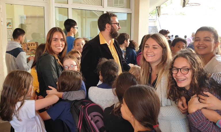 Les élèves de l'école et du collège réunis pour créer des groupes de fraternité.