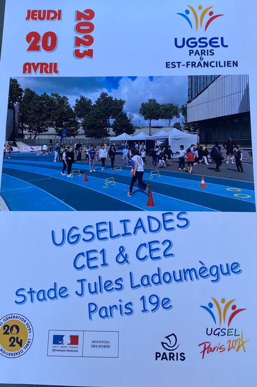 Les CE2 ont participés à l’évènement sportif les « UGSELIADES » organisé par l’UGSEL Paris 2024, au stade Jules Ladoumègue. Au total plus de 500 élèves de 9 écoles différentes était présent. Il s'agissait de concourir par petites équipes d'environ 8 élèves à différentes épreuves sportives "valides" et "non valides", tout en affrontant des équipes d'autres établissements scolaires. Chaque équipe à chaque épreuve rapporte des points à son ensemble scolaire. En fin de journée, avait lieu la remise des récompenses par établissement. Ce moment est une approche différente au sport et s’inscrit dans la dynamique de génération 2024.