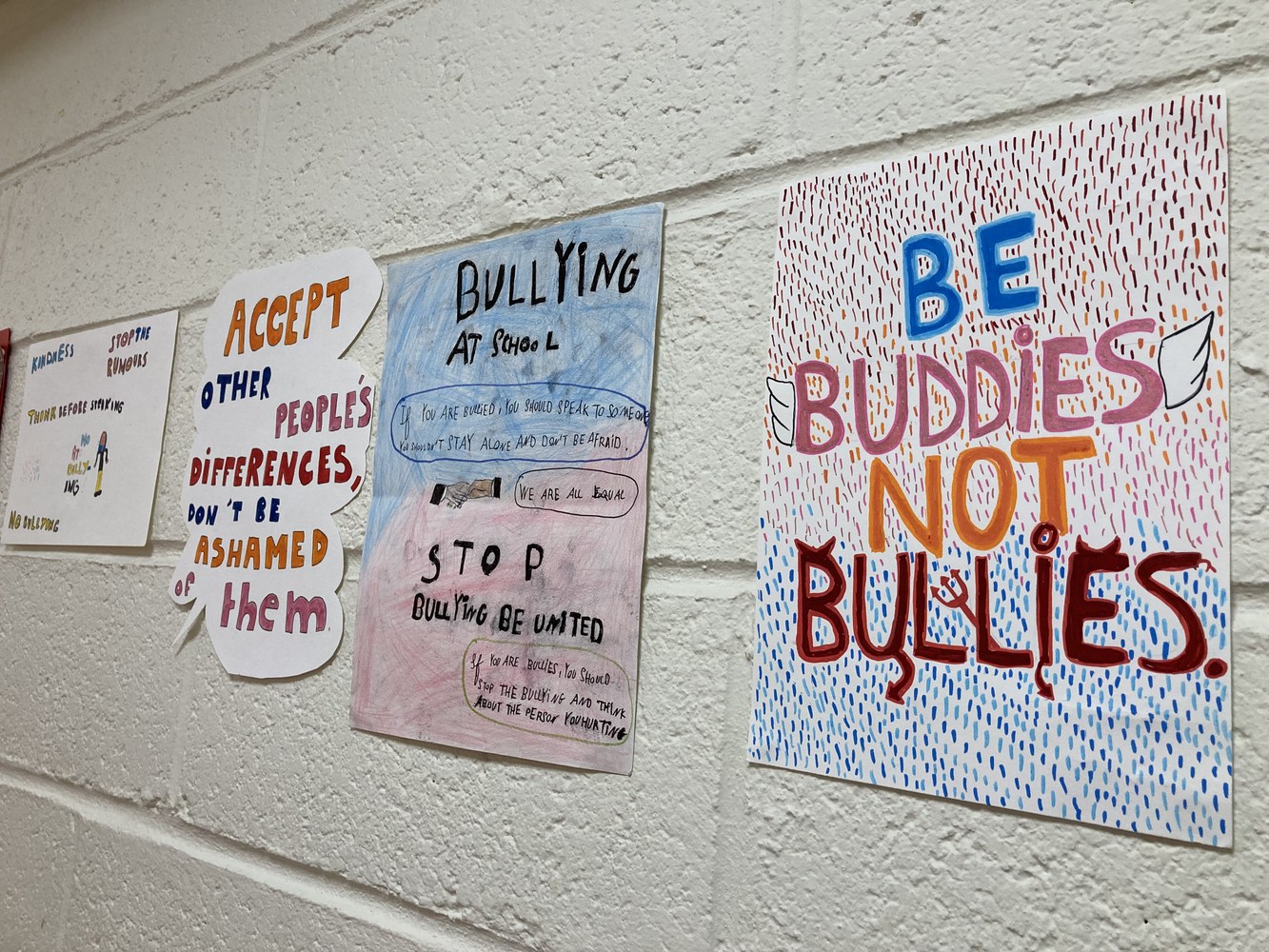 Les élèves des 4B et 4C ont réalisé des affiches dans le cadre d’une séquence d’Anglais contre le harcèlement. Elles sont à découvrir dans les couloirs du bâtiment 200 ainsi qu'au CDI.