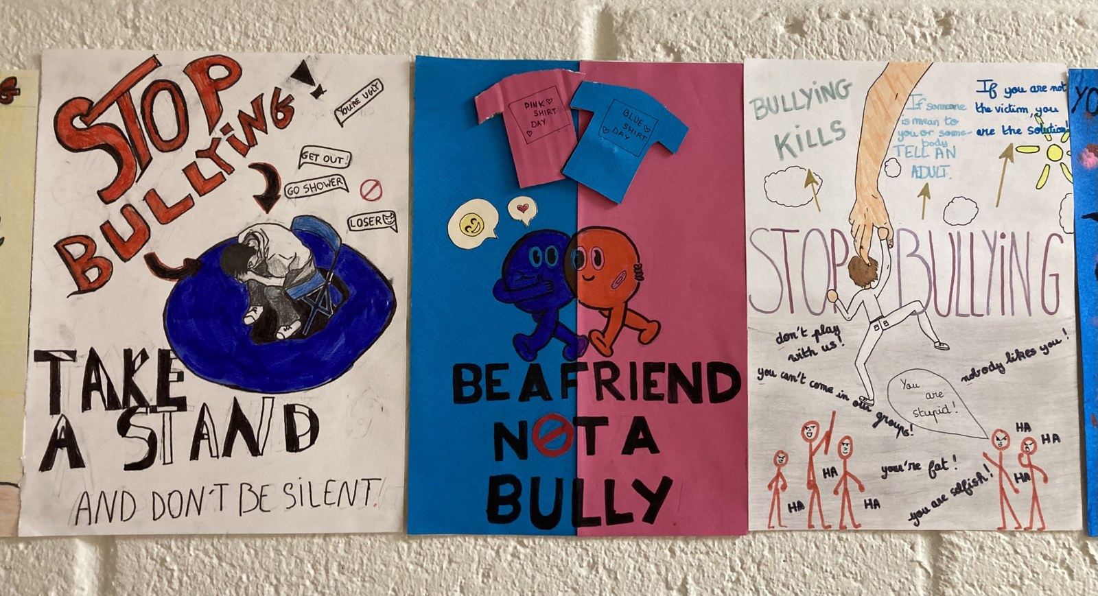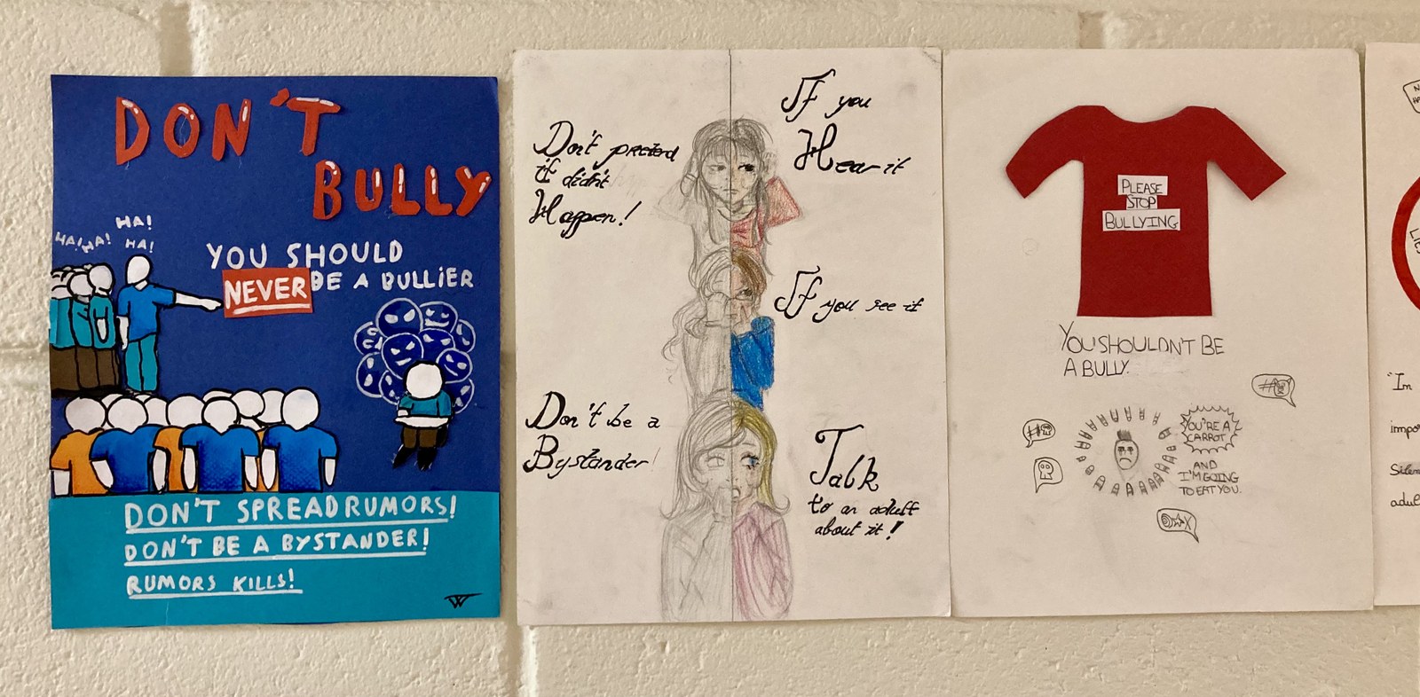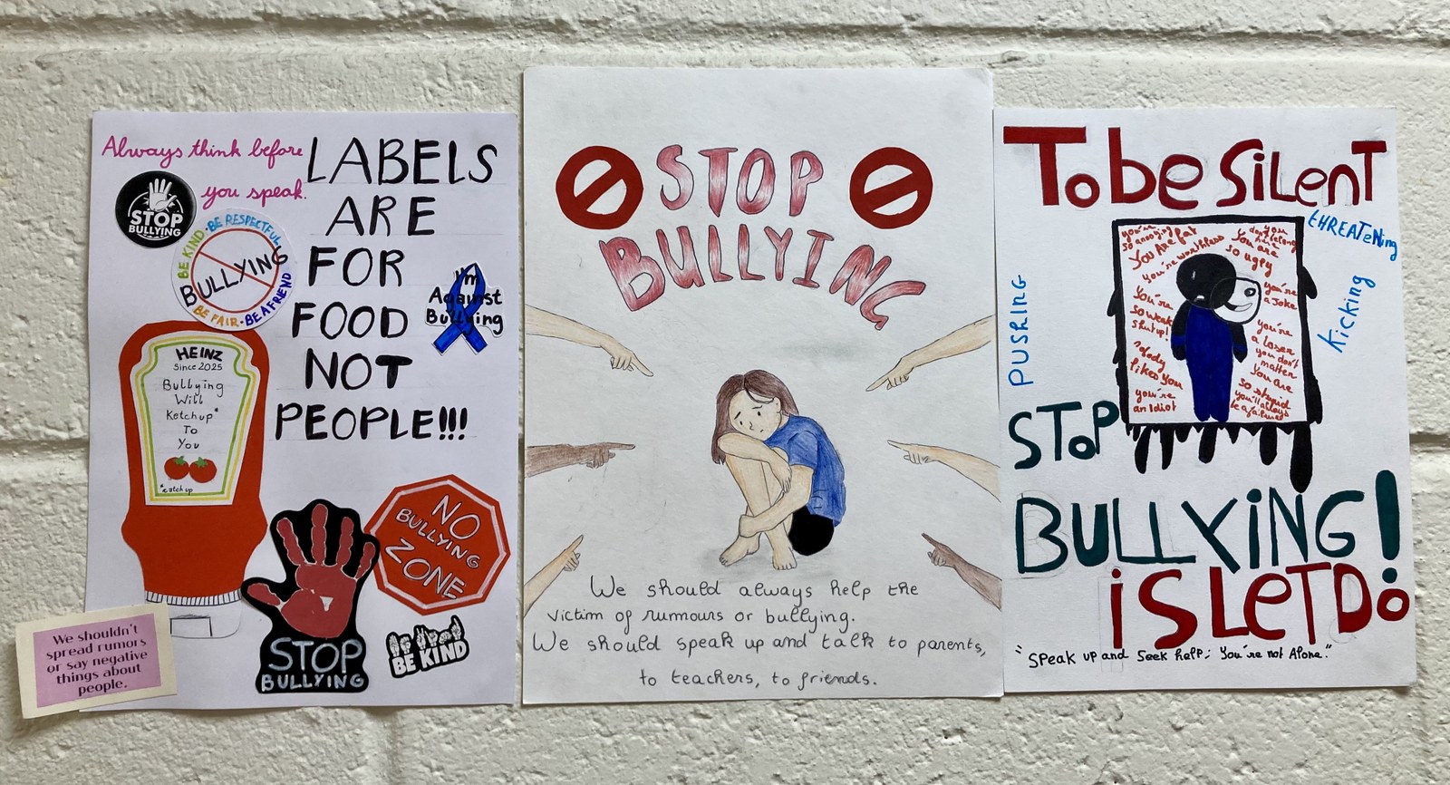 Une campagne d'affiches contre le harcèlement réalisée par des élèves de 4ème en cours d'anglais.