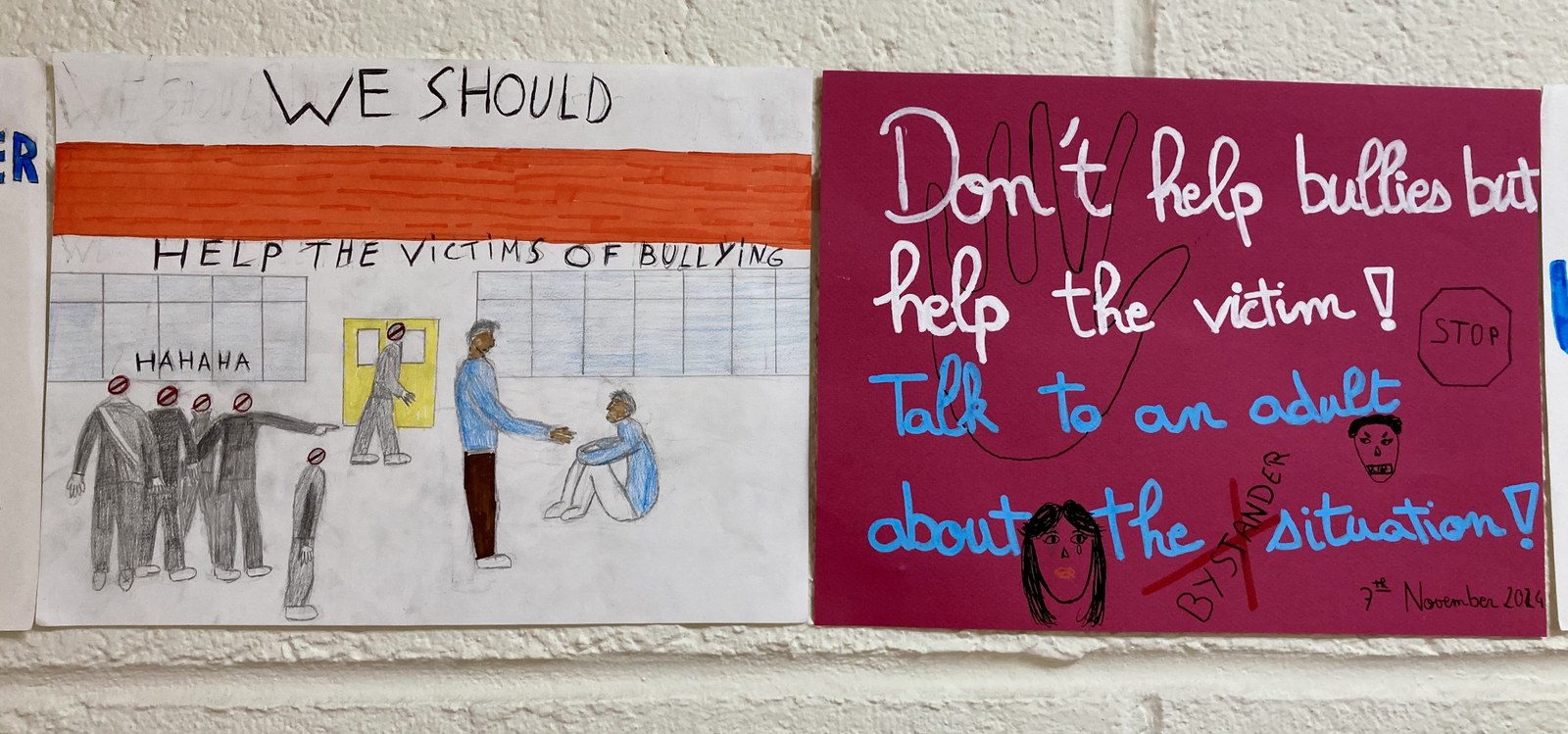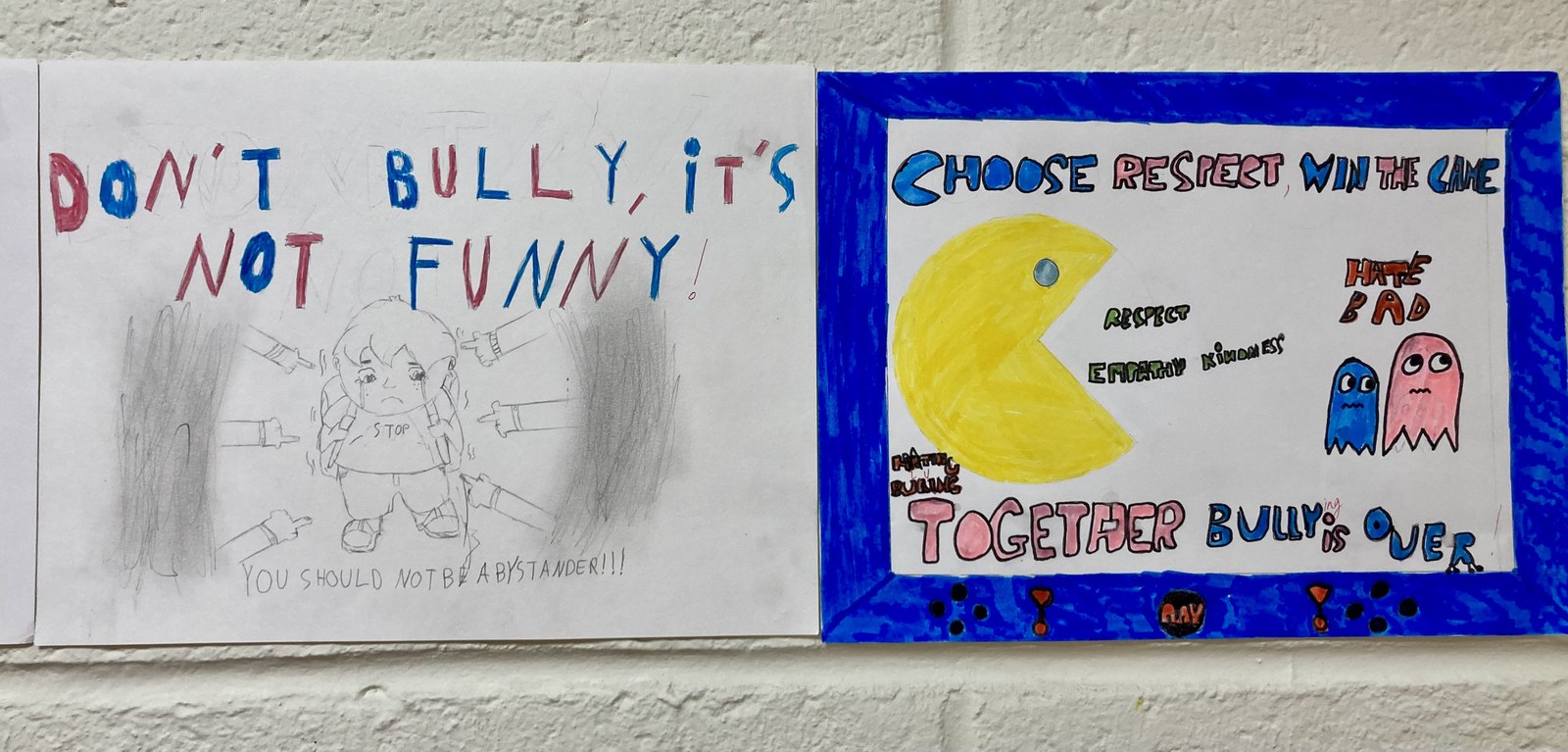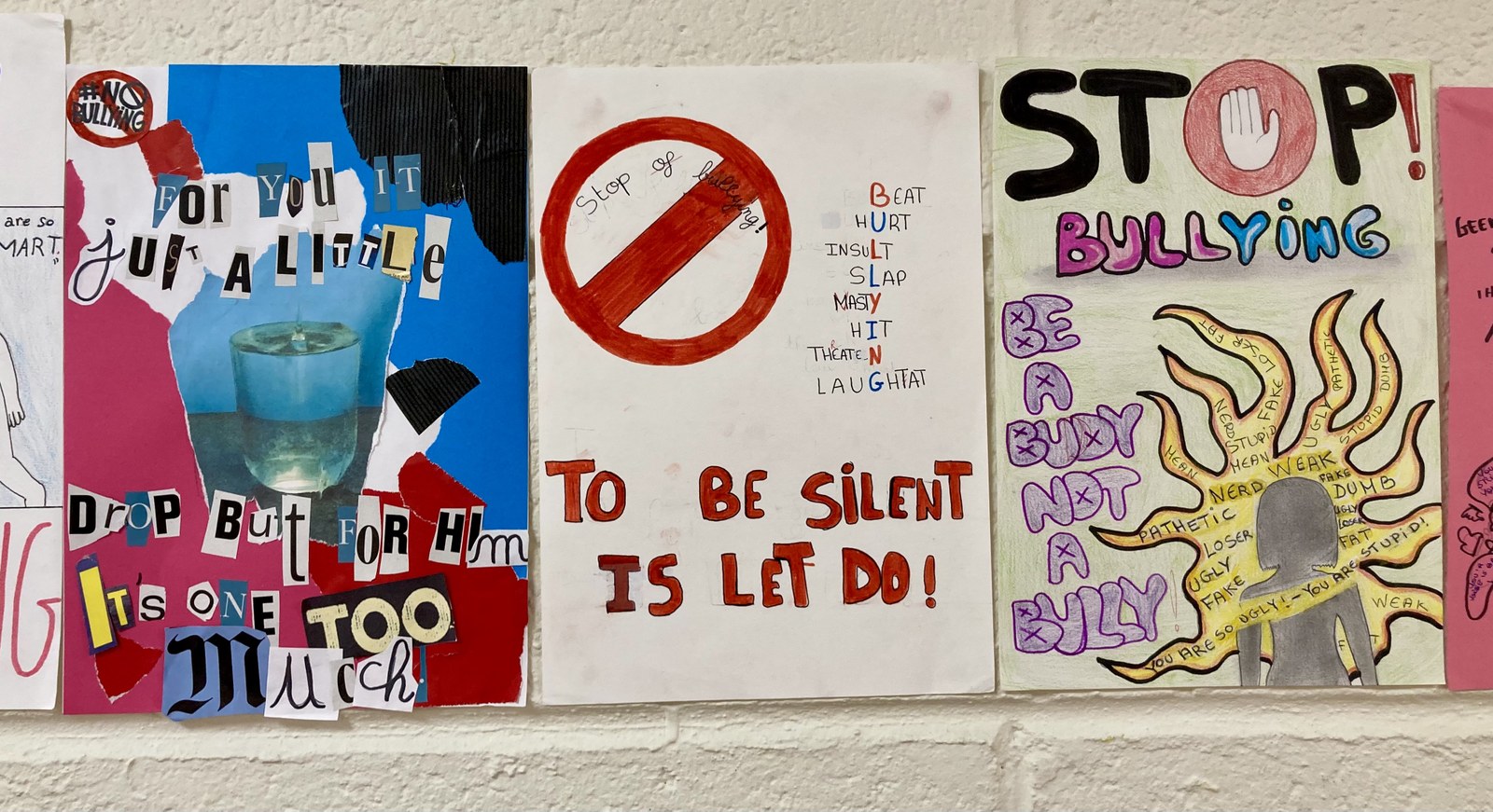 Une campagne d'affiches contre le harcèlement réalisée par des élèves de 4ème en cours d'anglais.
