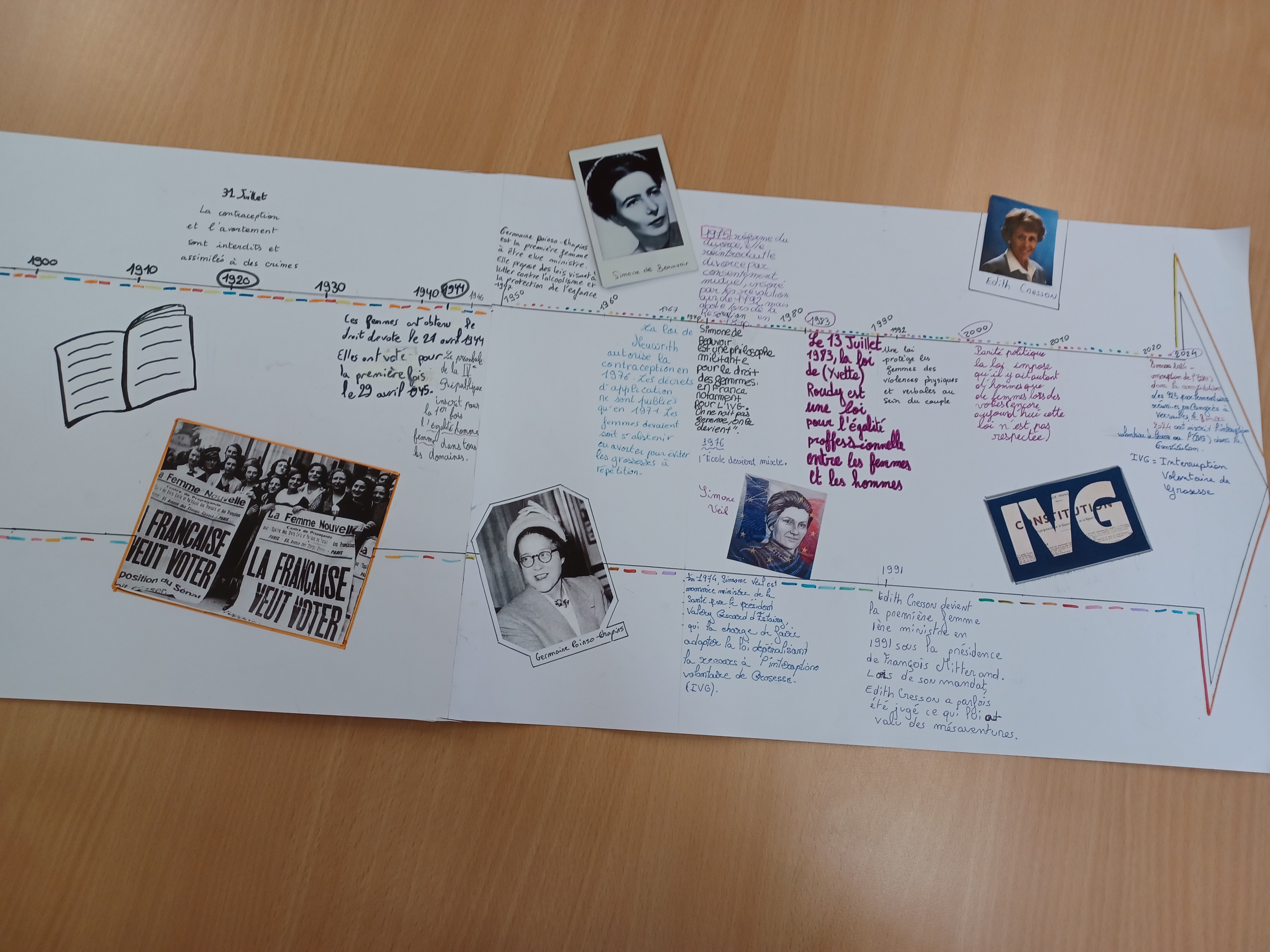 Ils ont synthétisé leurs découvertes autour de personnes ou de lois qui ont marqué l'évolution de ces droits à l'aide d'une frise chronologique à présent visible dans le couloir du 2ème étage.