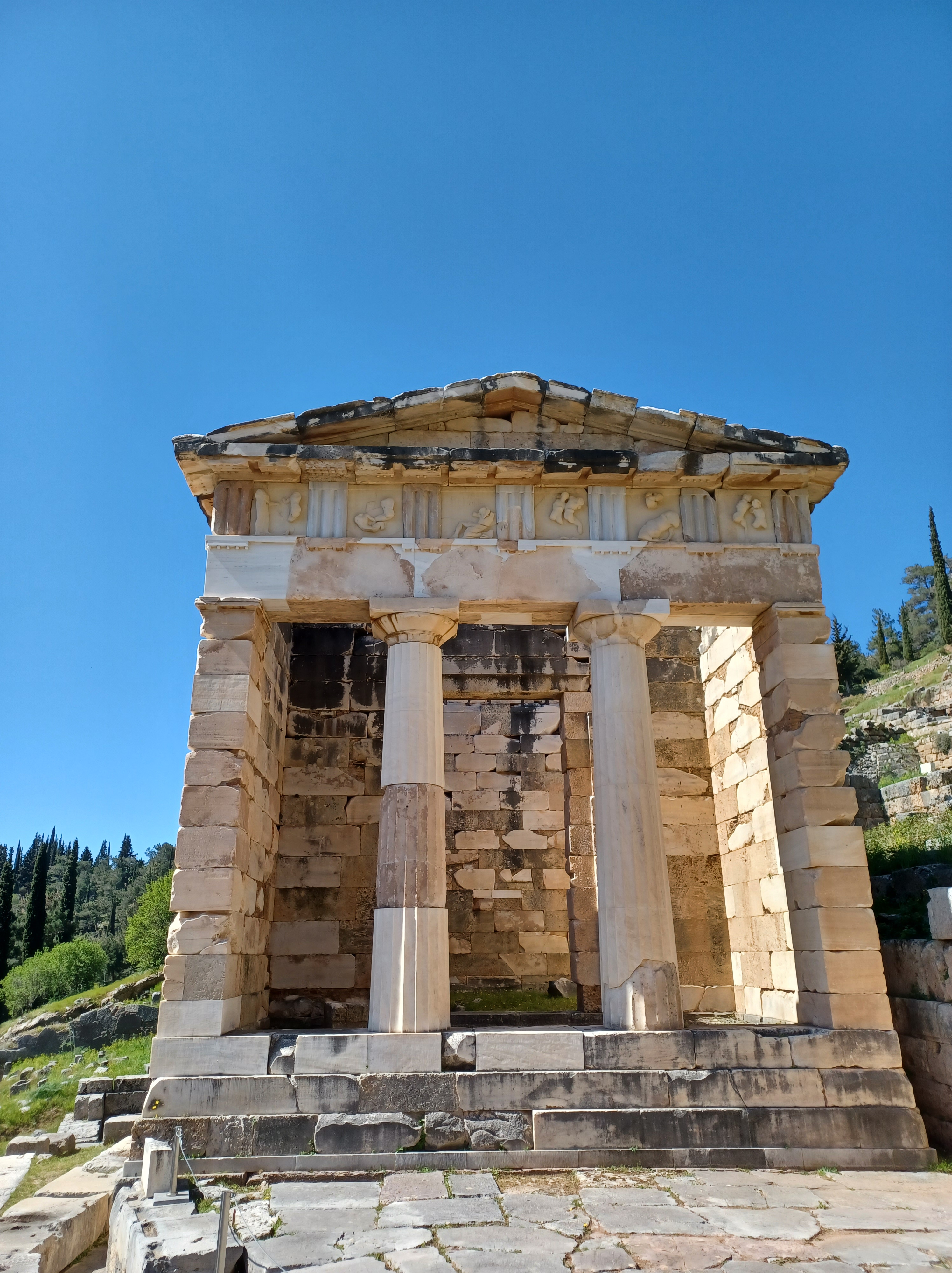 La semaine s'est terminée avec la visite passionnante du sanctuaire de Delphes sur lequel officiait la Pythie et la rencontre avec l'Aurige, une sculpture de bronze : ce jeune homme conduisait un char à quatre chevaux, un quadrige.