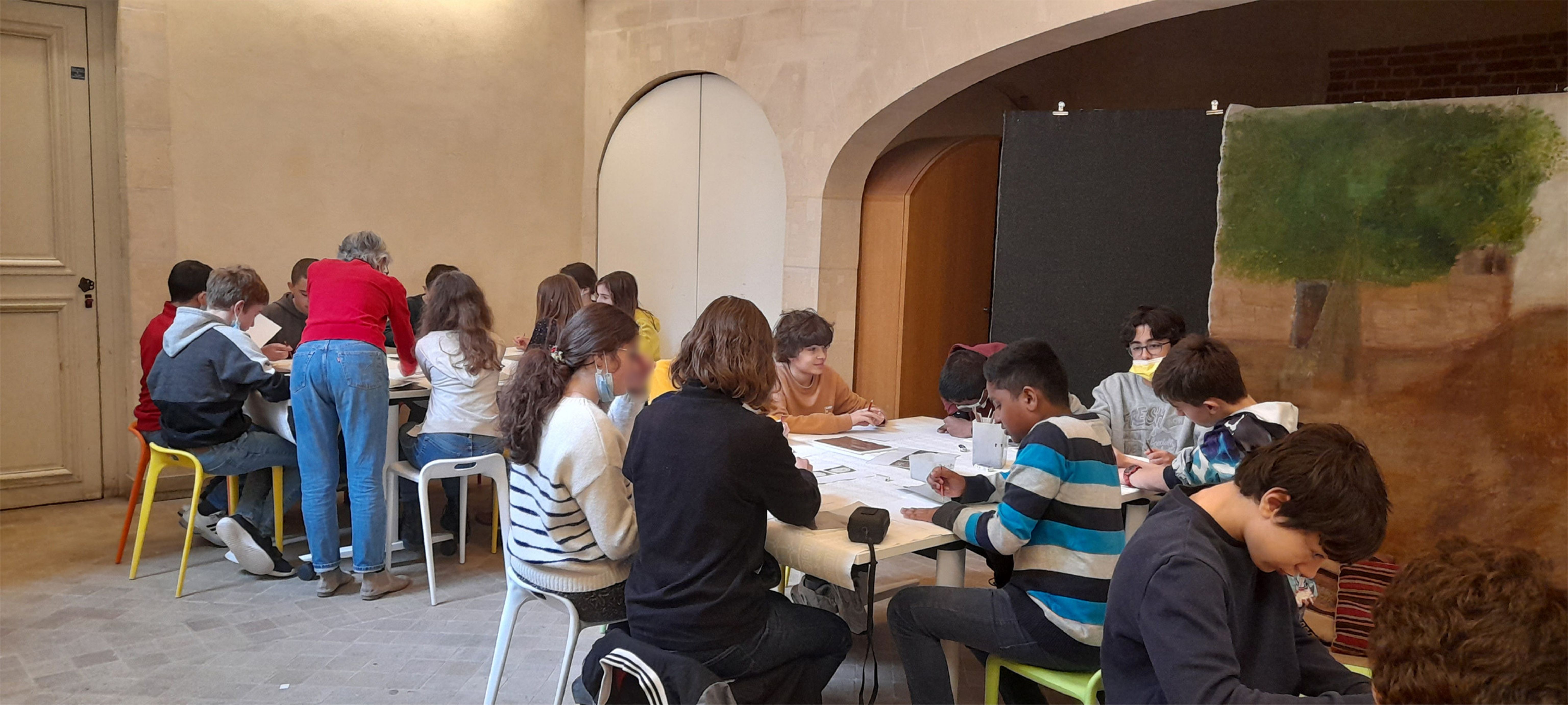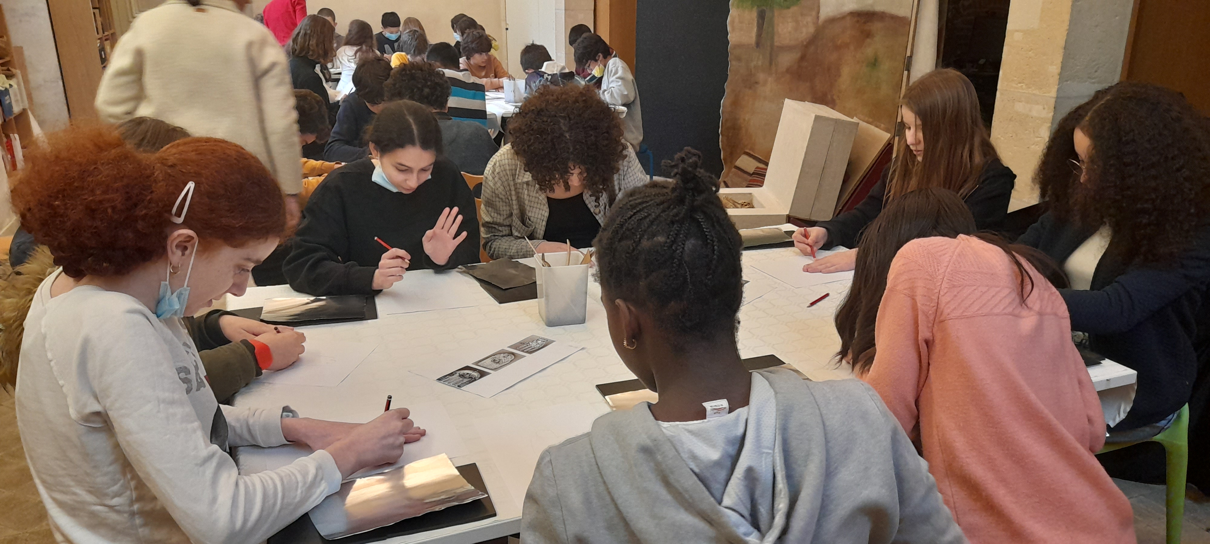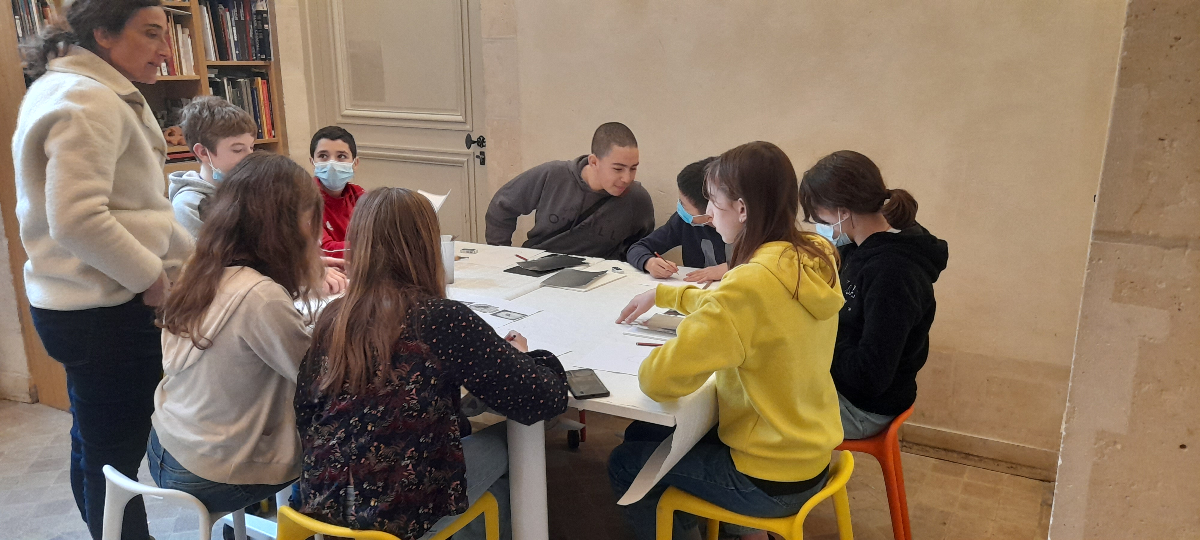 La classe de 5e B s'est rendue au MAHJ, musée d'art et d'histoire du Judaïsme dans le cadre du programme des cours d'histoire "Chrétientés et islams au VIème-XIIème siècles, des mondes en contact" avec le chapitre sur l'étude des sociétés dans l'empire arabo-musulman et en Occident. La visite avait pour but d’aborder, à partir de l’histoire d’Abraham, différentes facettes de cette figure emblématique et leurs résonances dans les traditions monothéistes. Les élèves ont pu assister et participer à un travail créatif sur métal repoussé.
