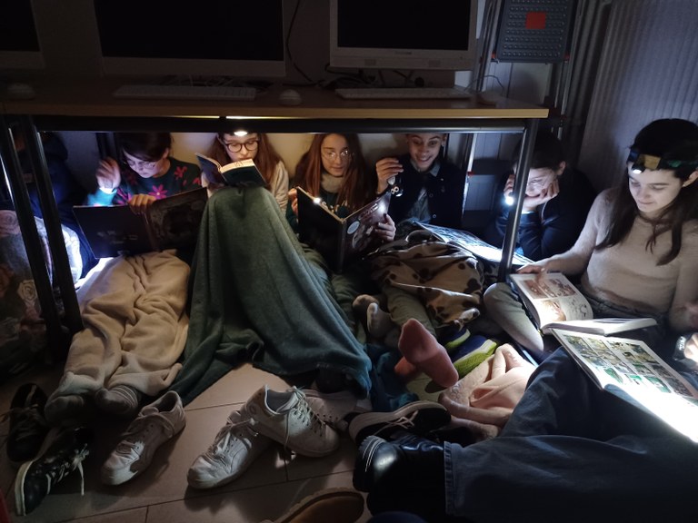 Se retrouver le soir au collège quand tout le monde est parti, boire un chocolat chaud dans la cour, lire dans le noir au CDI pelotonné contre un coussin, sous un plaid (et parfois avec son doudou), écouter des lectures à voix haute - dont l'intégralité de Matin brun de Franck Pavloff, confectionner des marques-pages, jouer à un blind-test littéraire, voilà ce qu'ont vécu les élèves lors de cette nuit un peu particulière.