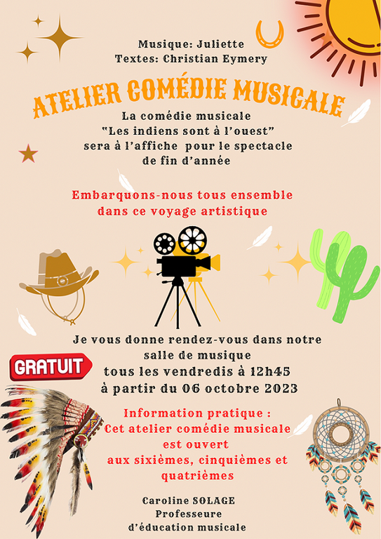 Inscription à l'atelier comédie musicale Vous avez jusqu'au 6 octobre ! Formulaire à télécharger ici !