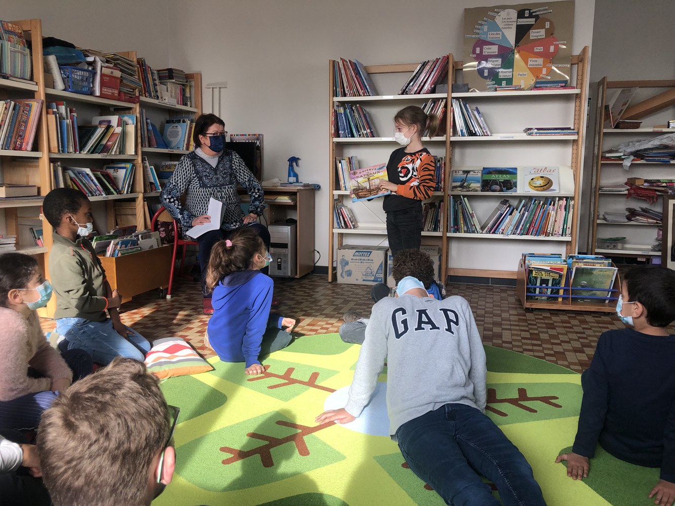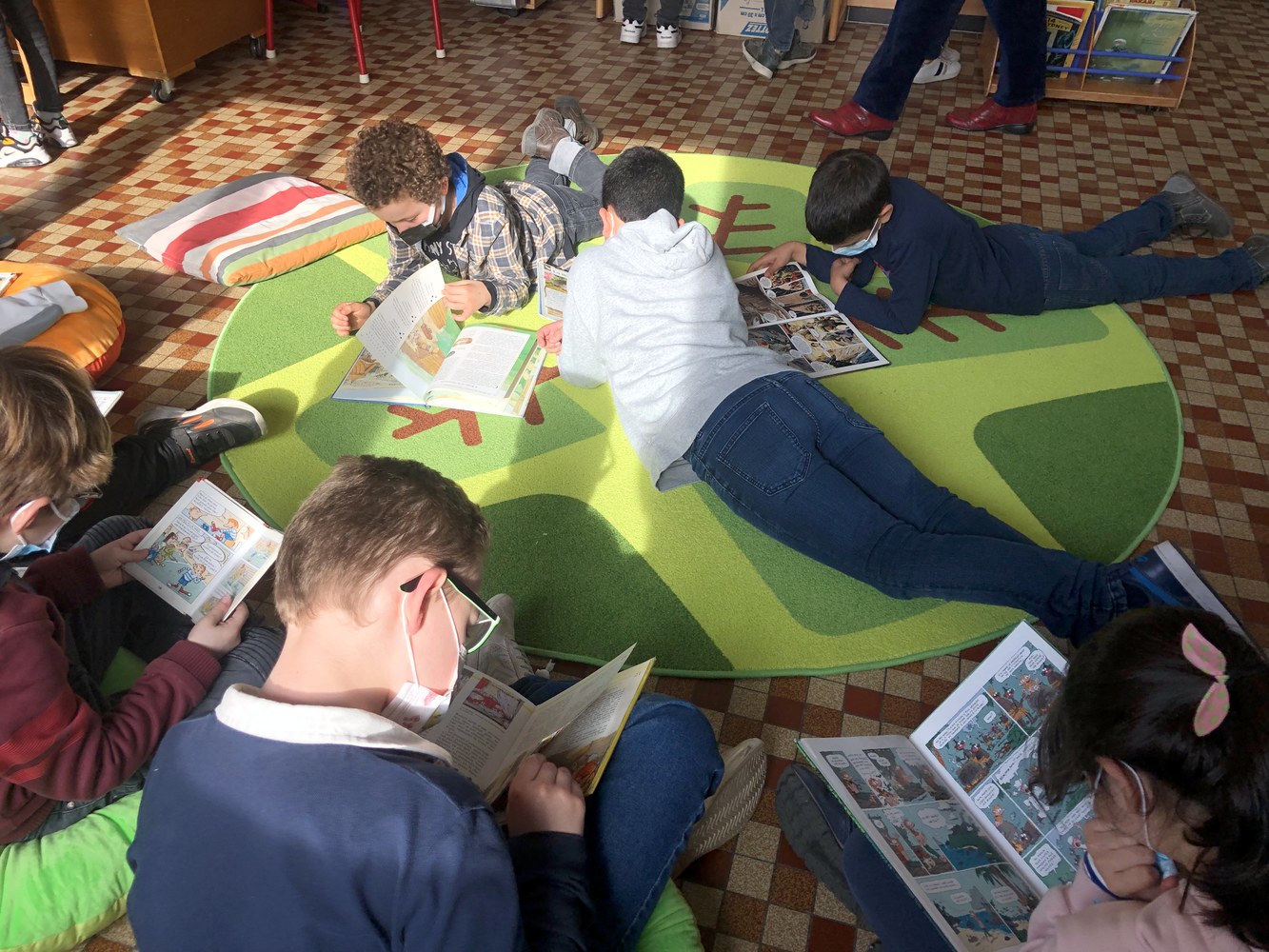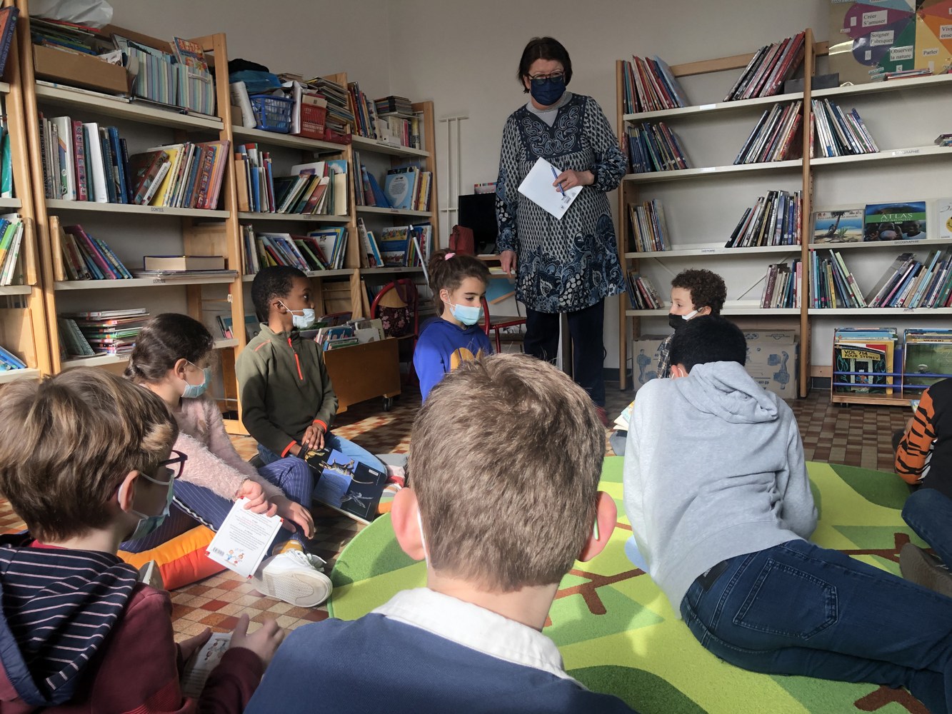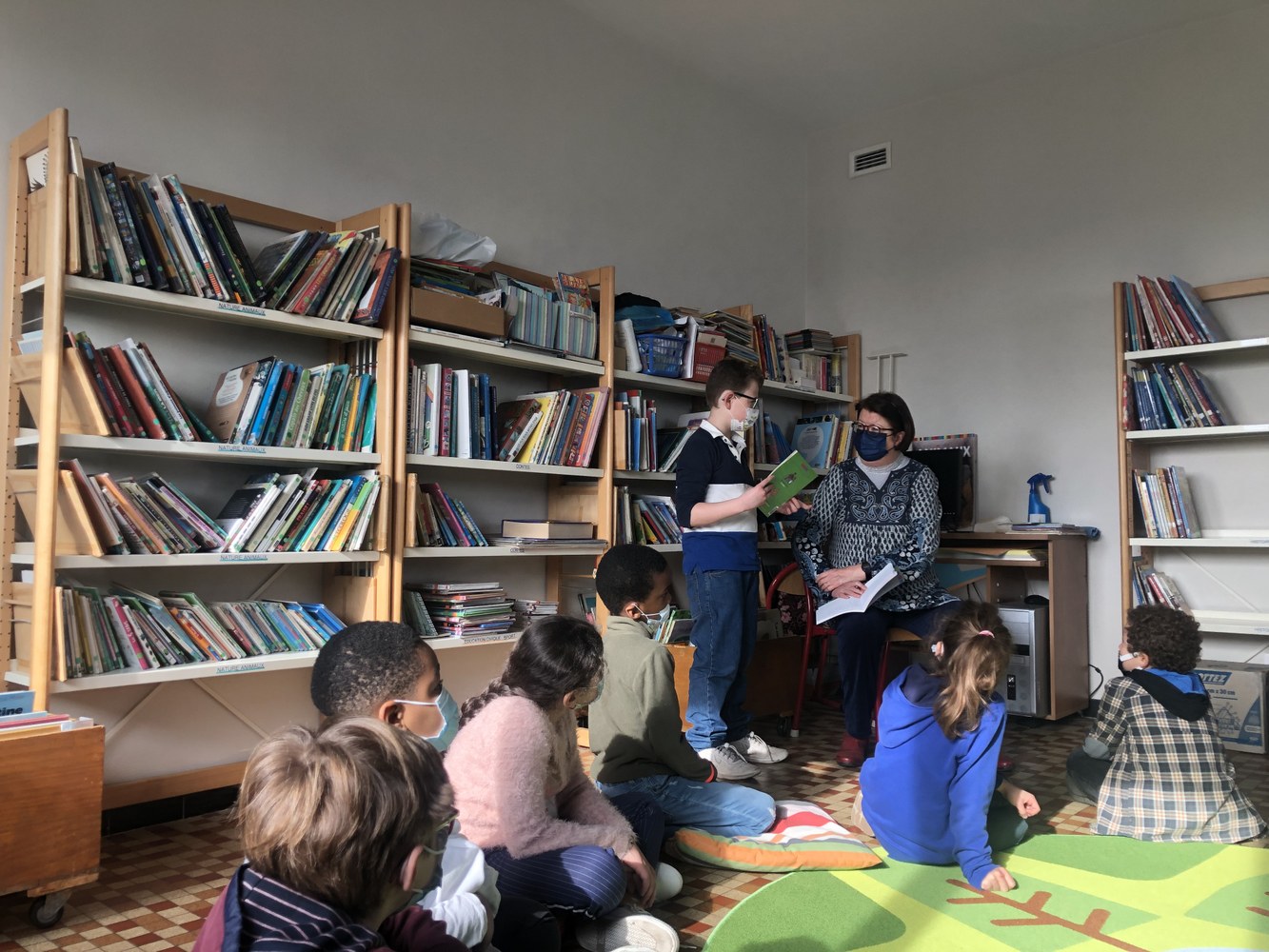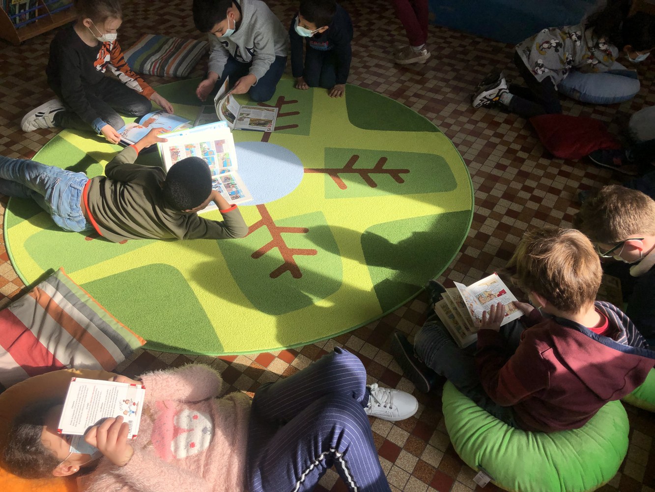 Les élèves de primaires ont découvert dernièrement le réaménagement de la bibliothèque, rendant le lieu de lecture plus confortable et plus chaleureux. Des coussins et tapis colorés au couleur du printemps ont été choisis grâce à Marie-Anne, animatrice bénévole et ancienne professeur des écoles à Saint-Germain de Charonne La Salle.