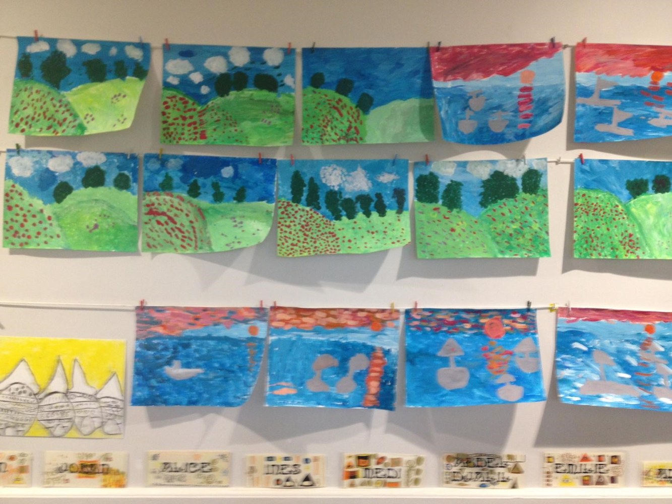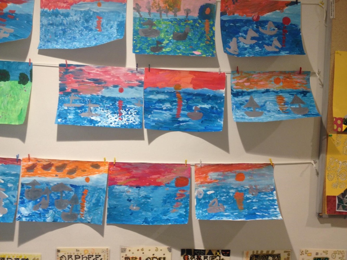 Chaque année nous emmenons les deux classes de CE1 sur le chemin des arts. Sorties dans les musées, parfois avec ateliers. Pratique de différentes techniques de peinture, pastels… utilisation de brosses à dents, cotons-tiges, pinceaux divers ! Et enfin des livres et des jeux pour reconnaître des œuvres mondialement connues. Quelques réalisations à admirer :