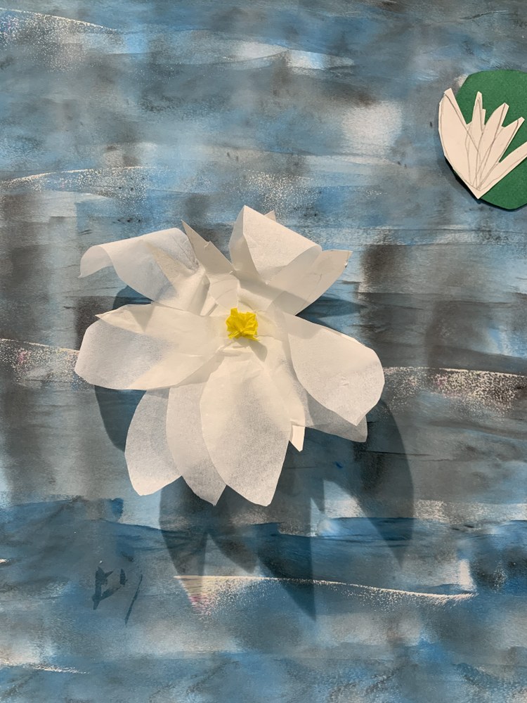 Grâce à cet apprentissage, nous avons réalisé une série sur la pluie, et une autre représentant le cycle de vie des nymphéas à différents moments de la journée.