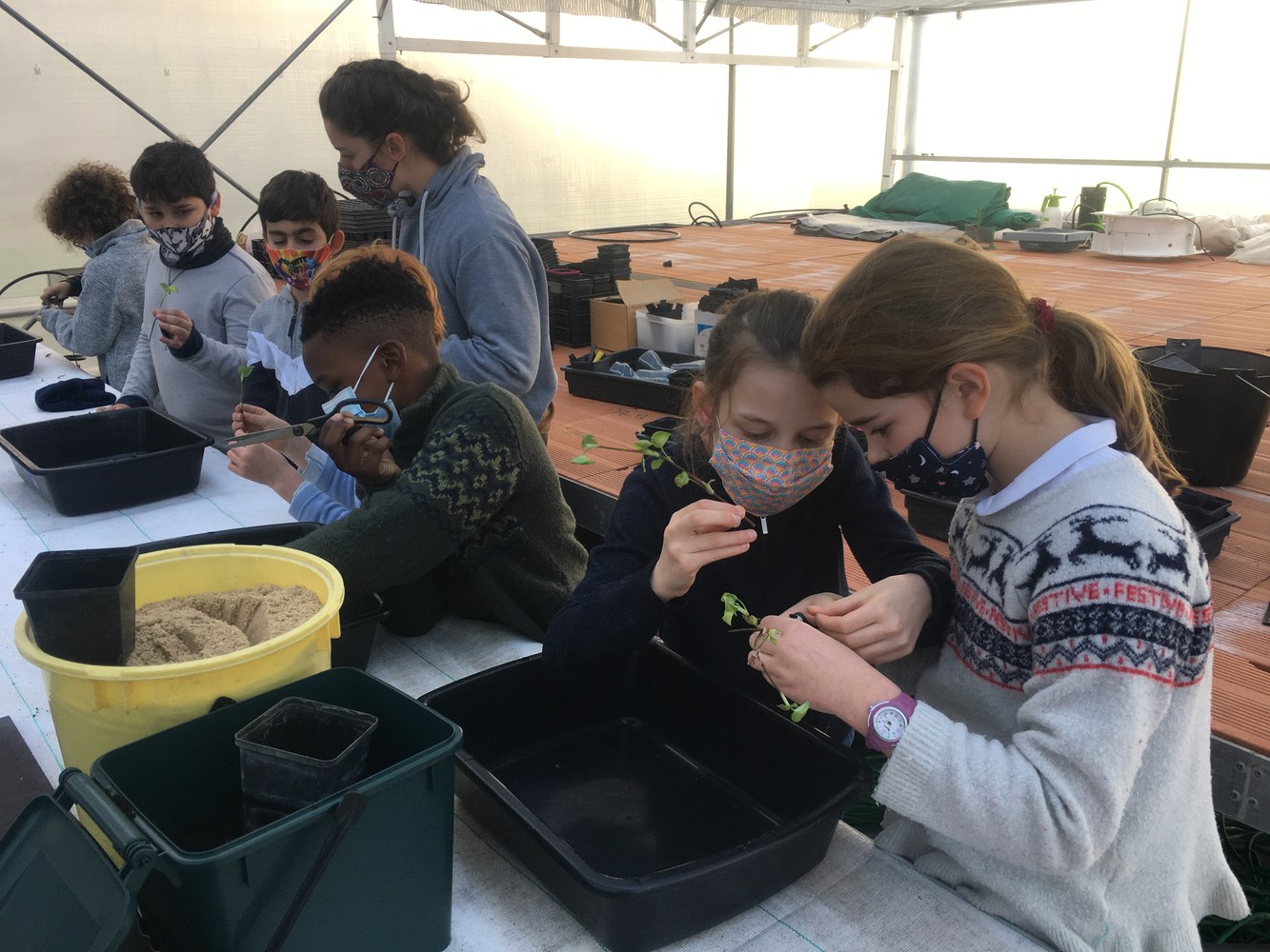 Le 10 décembre, les CM1 ont eu la chance d’aller visiter la Ferme Pédagogique « le Paysan Urbain », située à 200 mètres de l’école. Ils y ont passé toute une après-midi, et ont pu visiter la ferme et découvrir le cycle de vie des micro-pousses produites sur le site. Ils ont même participé à un atelier bouturage de plants de kalanchoé et de misère !
