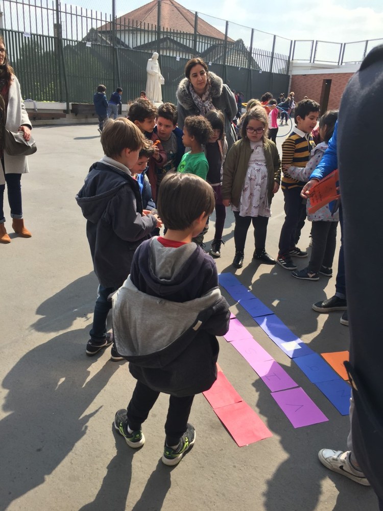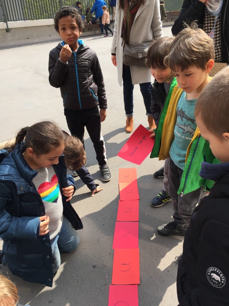 Tout le monde s'est ensuite retrouvé sur la cour pour rassembler les réponses et trouver le mot mystère (c'était HONFLEUR, la destination « surprise » du voyage de fin d'année!)