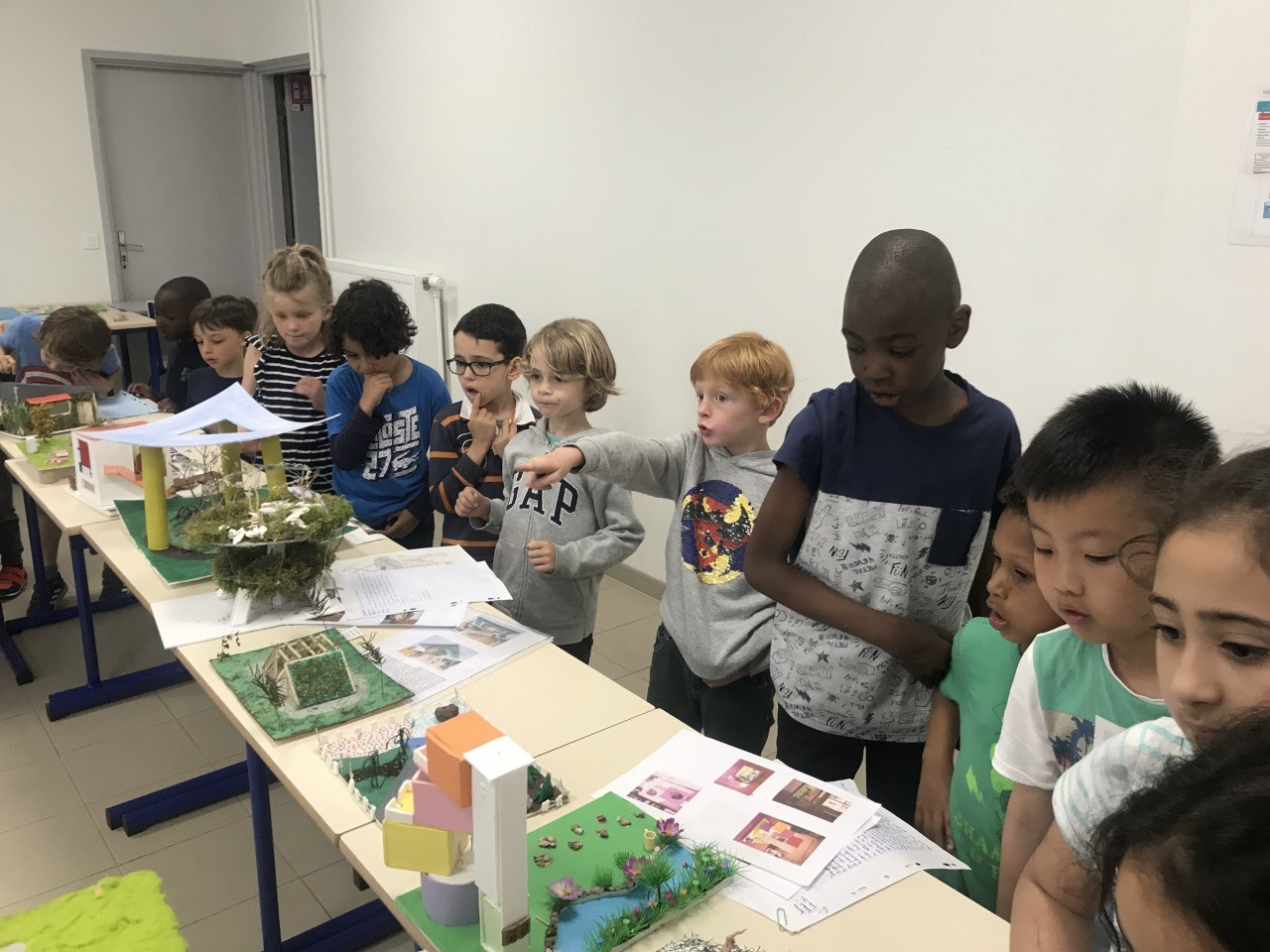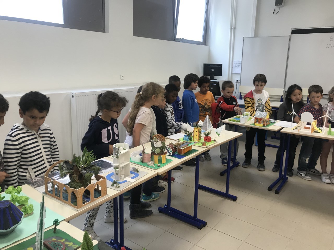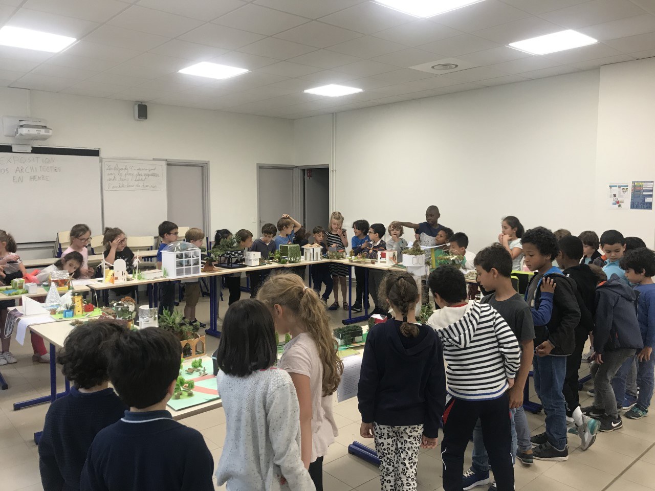 Les CP sont allés observer le travail des élèves de 4ème qui ont construit des maquettes en repensant à une ville plus végétalisée.