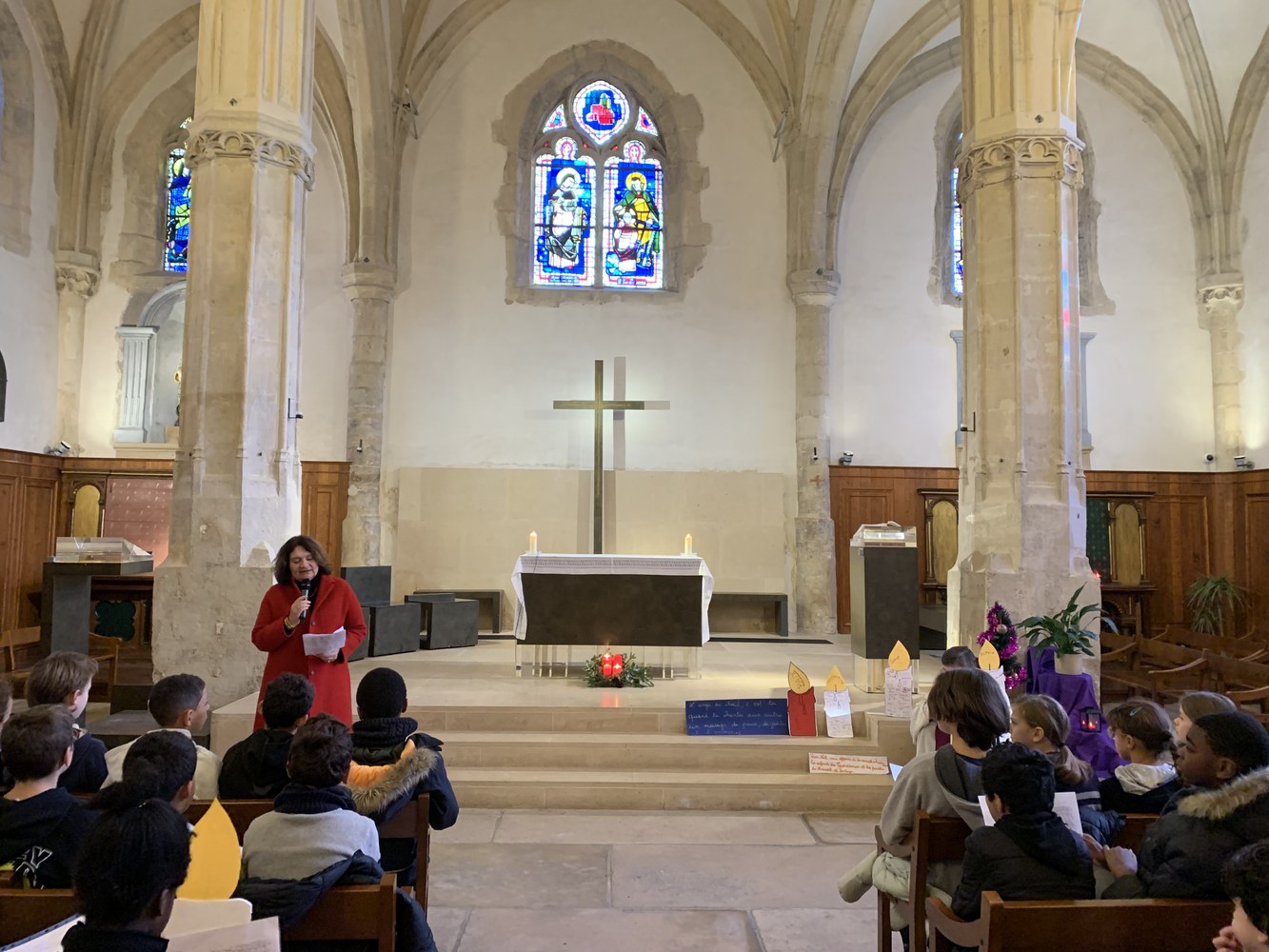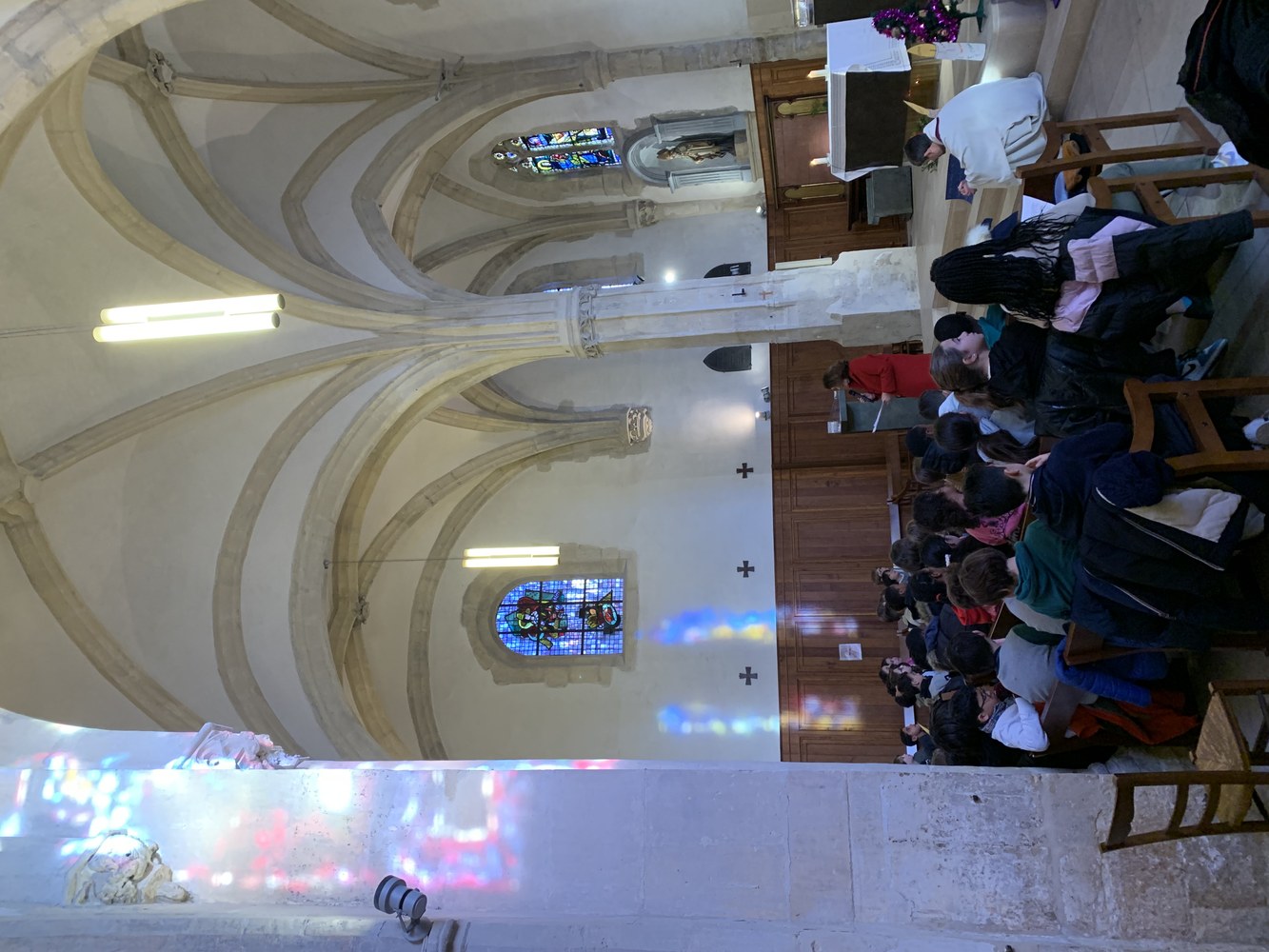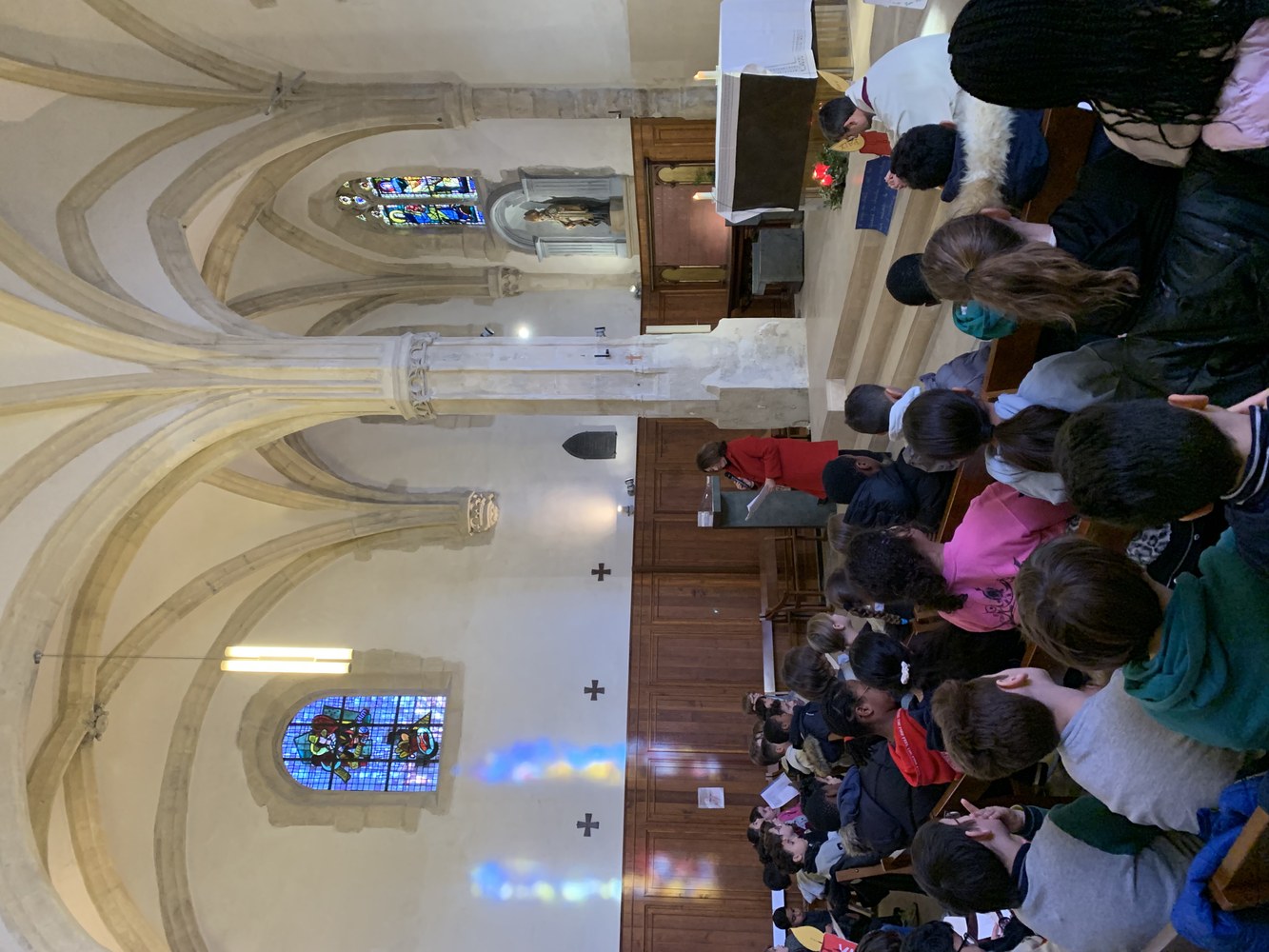 Les élèves du primaire se sont rassemblés à l'Eglise St Germain de Charonne avec le père Christophe Alizard pour une célébration autour de Noel.
