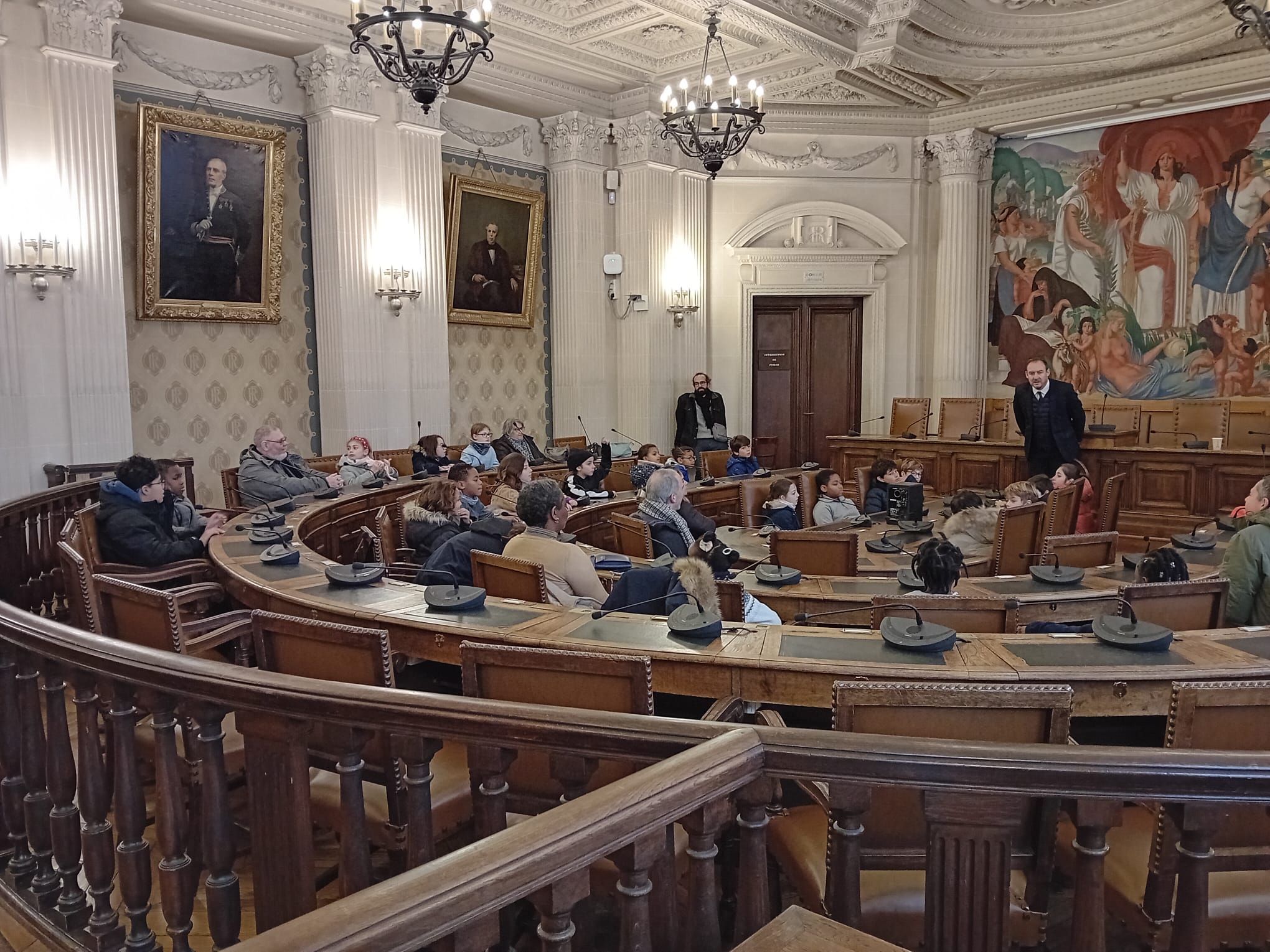 À leur arrivée, l'équipe a été chaleureusement accueillie par la maman d'Antonin, collaboratrice à la mairie. Elle a guidé le groupe à travers les couloirs de l'hôtel de ville, faisant découvrir la salle du conseil municipal et la salle des mariages. La rencontre fortuite avec le maire en pleine interview a ajouté une touche d'actualité à la visite.
