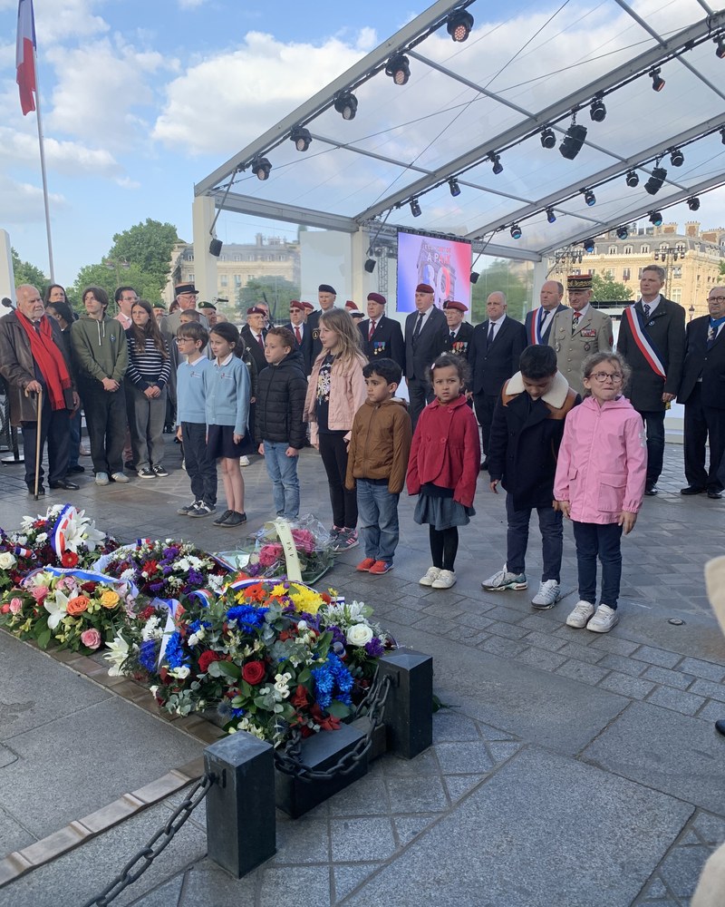 Des élèves du primaire ont assisté à la cérémonie du ravivage de la flamme le 7 mai 2025