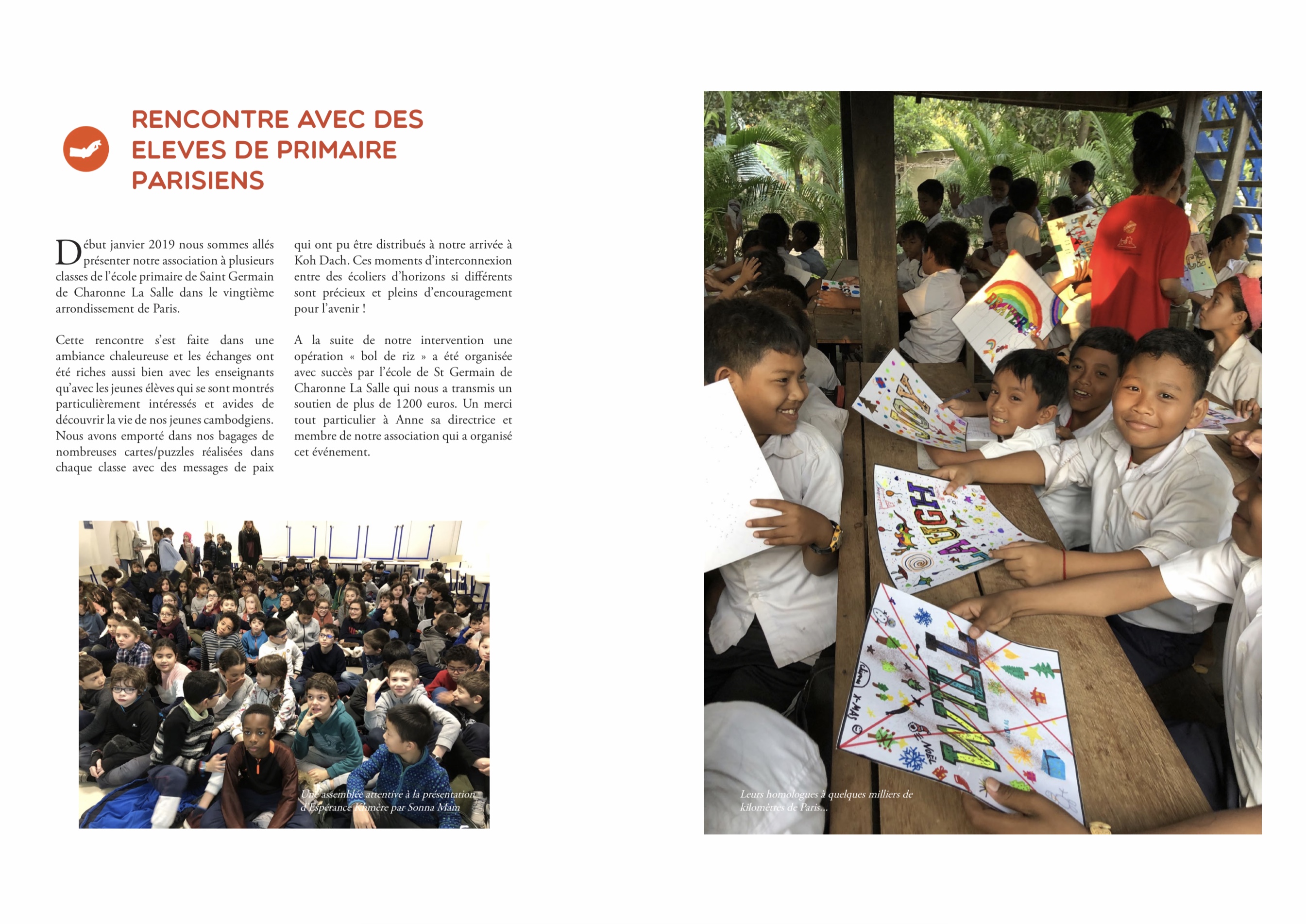 Les élèves ont pu transmettre des dessins aux écoliers cambodgiens et ont participé à une opération "bol de riz" à l'école afin de soutenir l'association.
