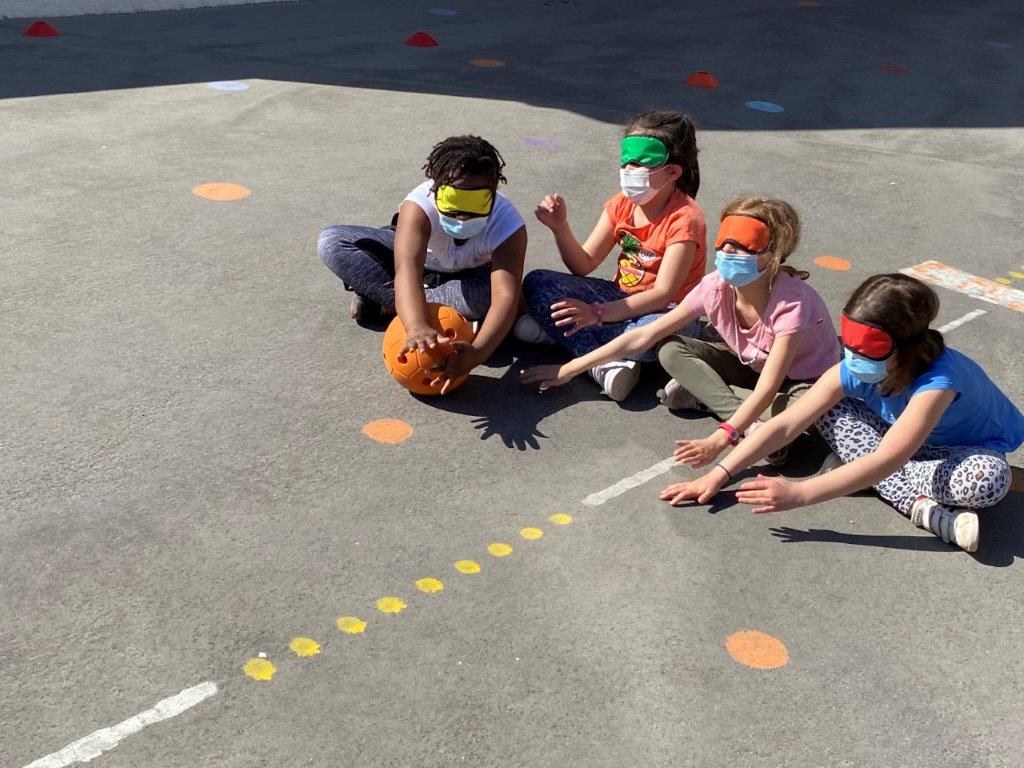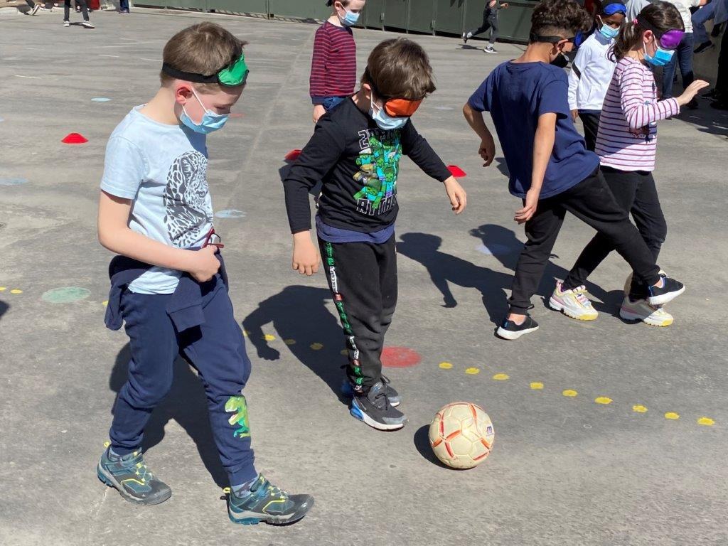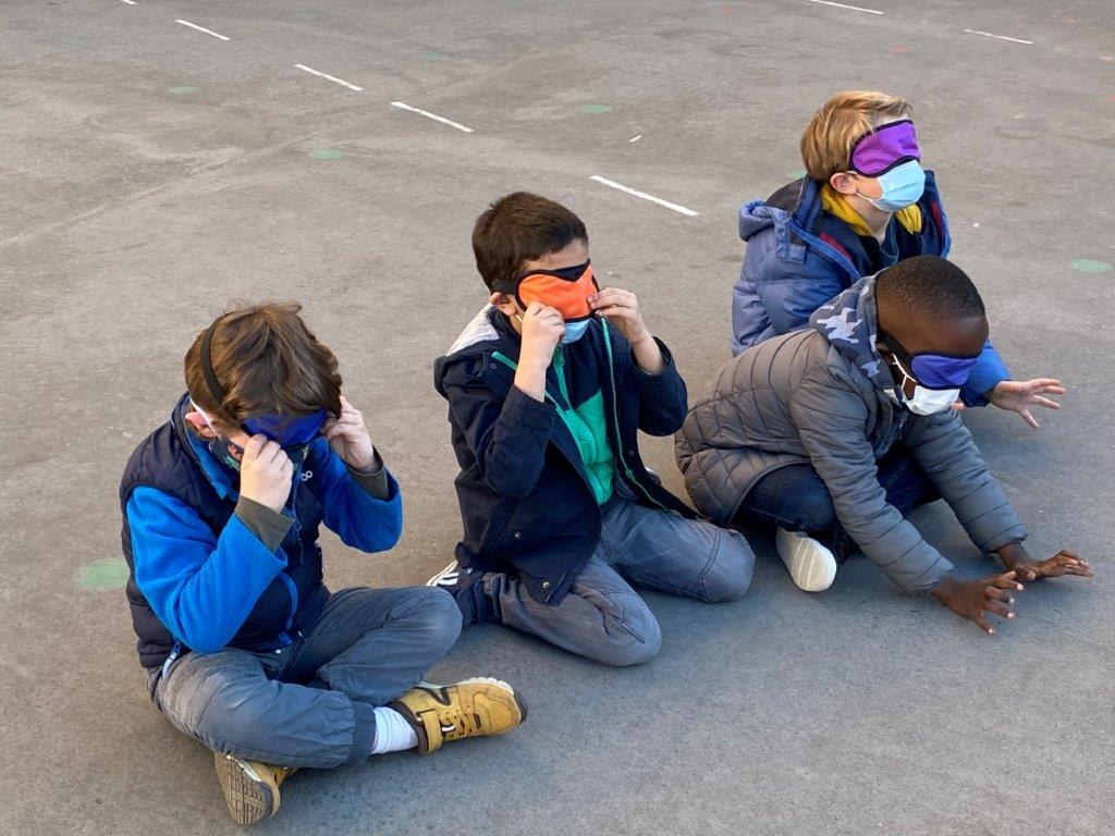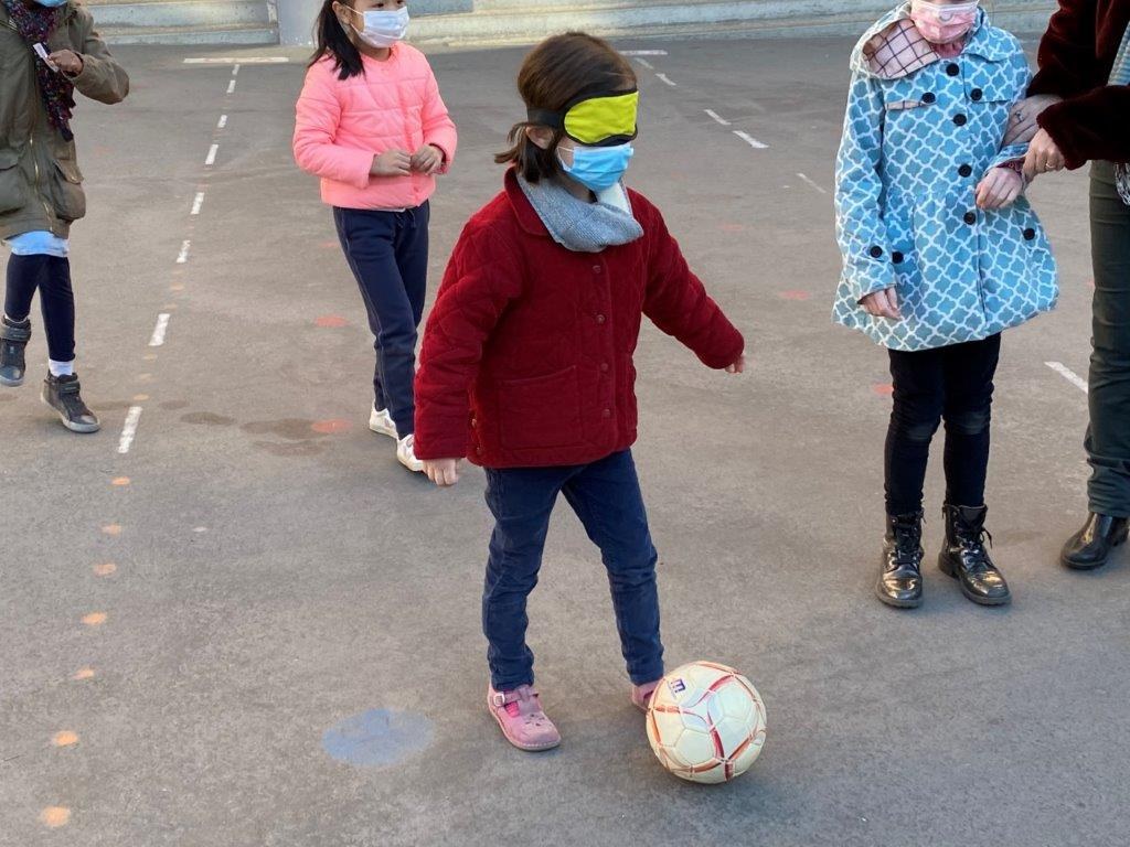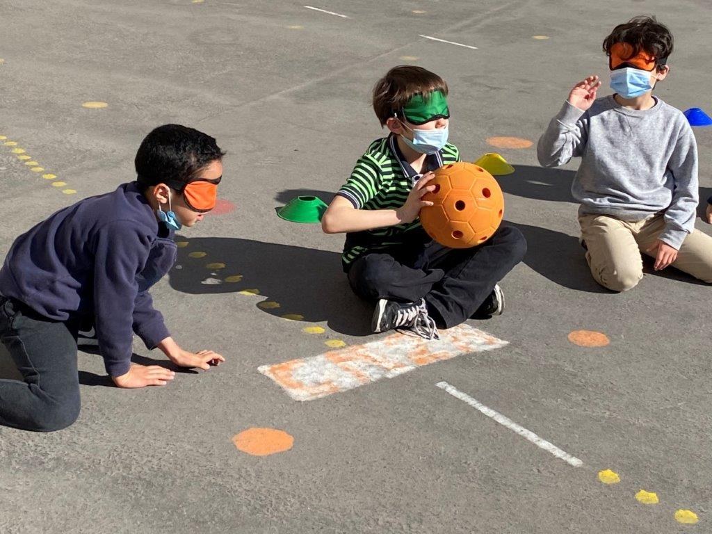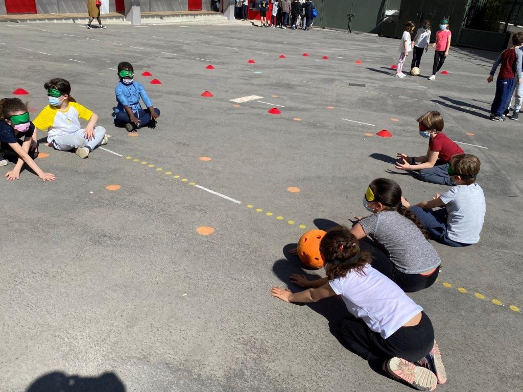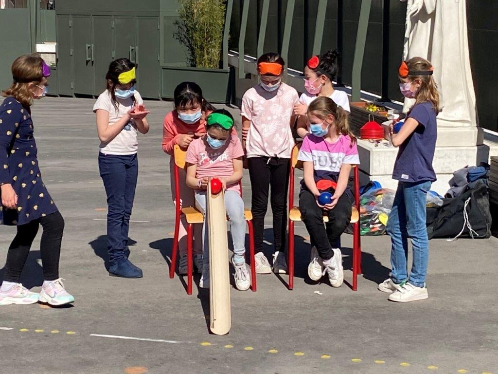 Nous avons aussi fait des jeux sportifs avec des animateurs dans la cour pour mieux comprendre le handisport (les yeux bandés par exemple ou la boccia).