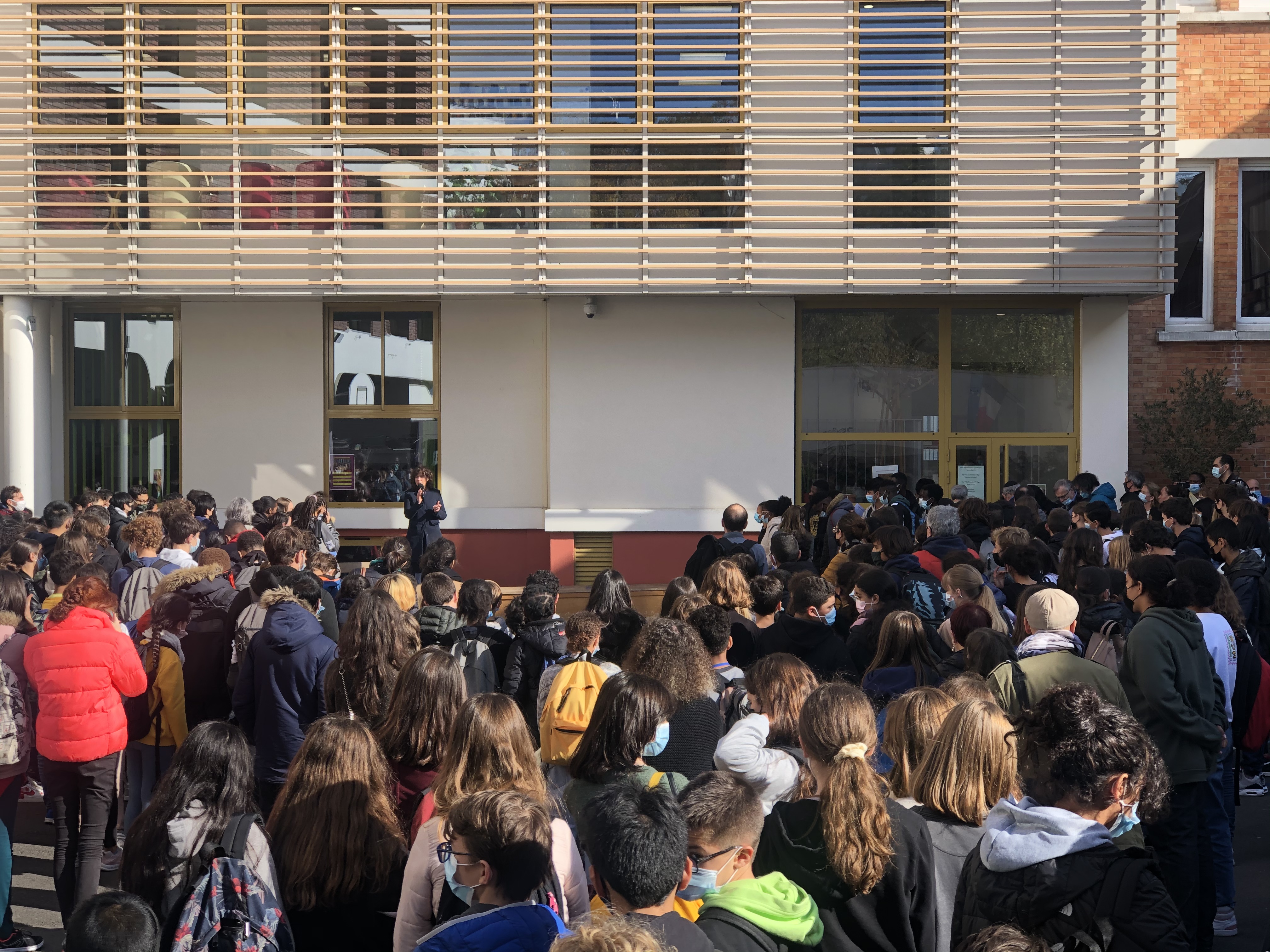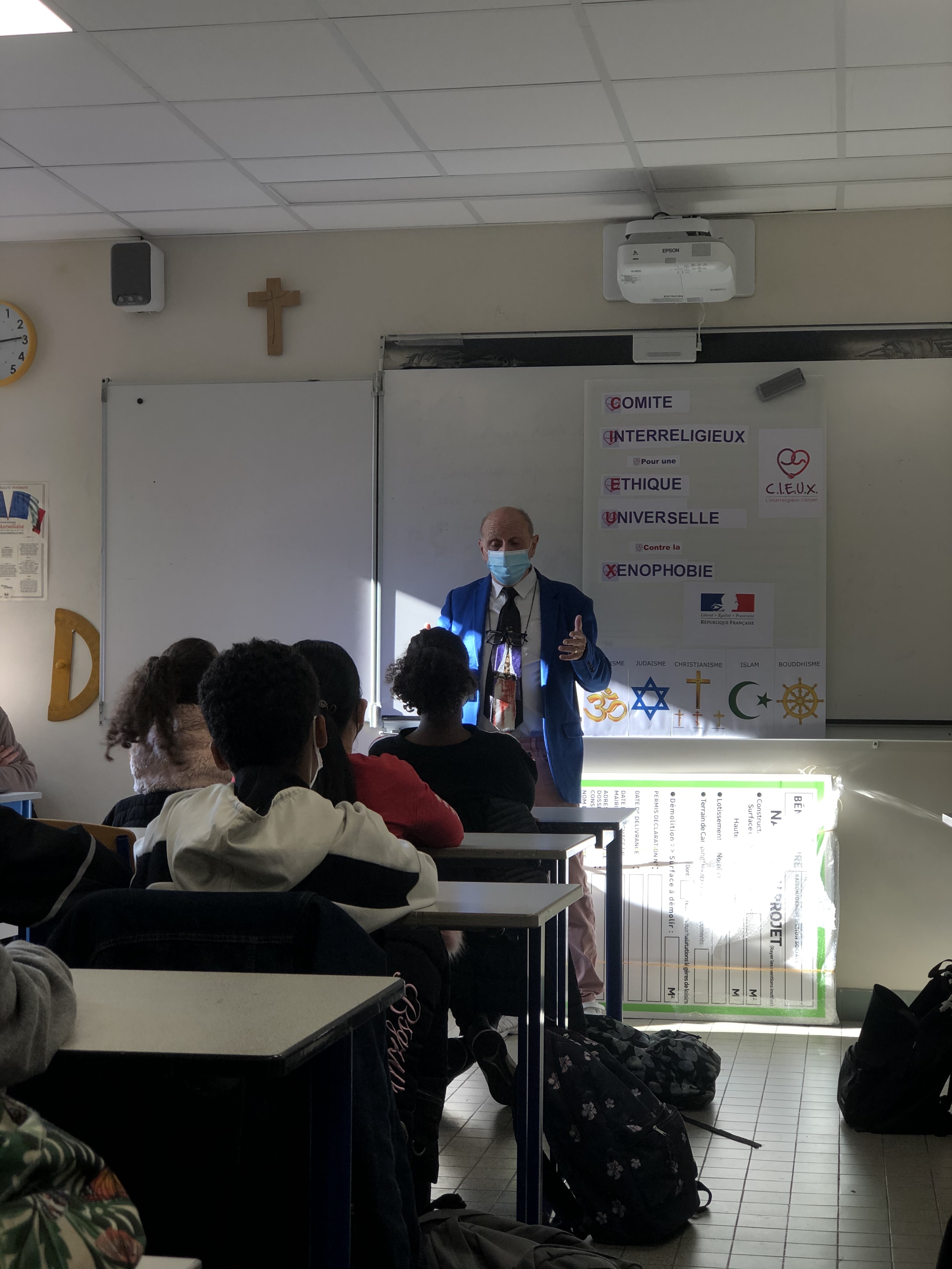 Du côté du collège, le programme de cette journée a été dédiée à Samuel Paty, enseignant d'histoire-géographie, assassiné en octobre 2020. La journée a été élaborée en collaboration avec 4 associations : Artisans de Paix, Coexister, C.I.E.U.X, Ensemble avec Marie. Près de 35 intervenants sont venus rencontrer les collégiens pour aborder avec eux le sujet du dialogue interreligieux. Des échanges empreints de bienveillance et apaisés, on a ressenti une forte solidarité.